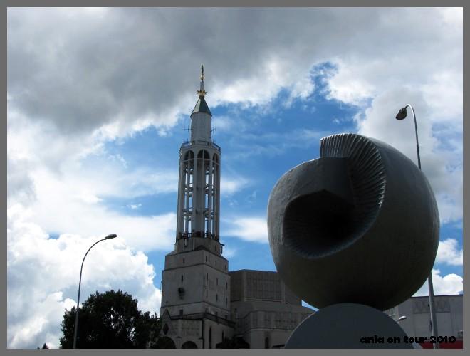 Oto i kościół z obwarzankiem. To jedna z wielu rzeźb z okresu PRL-u. Kiedyś stała przed BTL-em:
