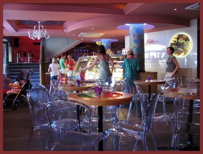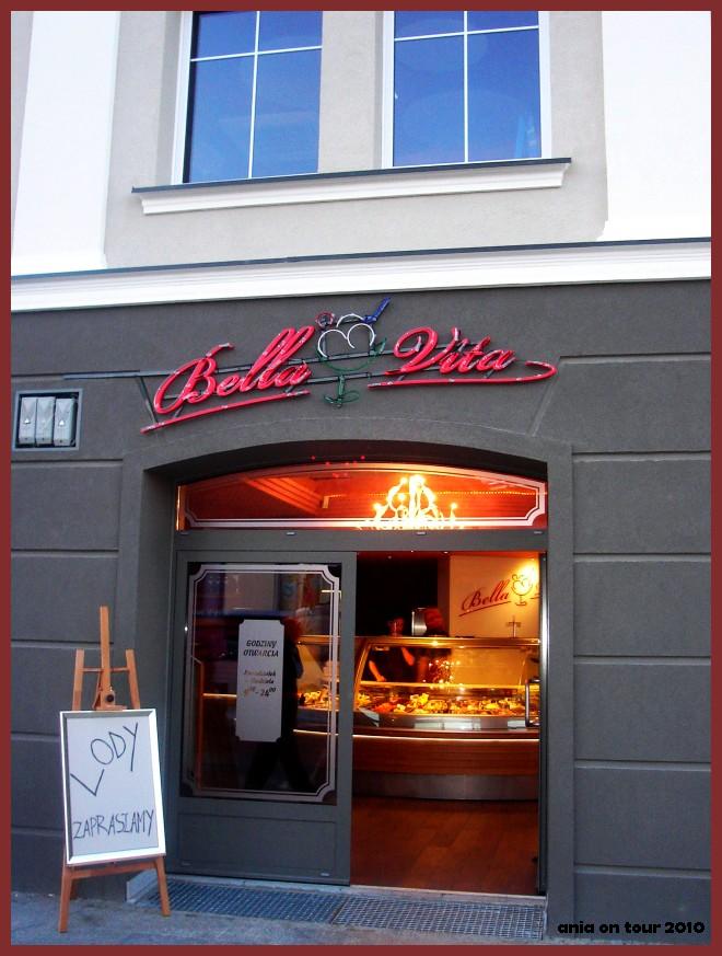Zacznę od nowości. Tego lata rozpoczęła swoją działalność lodziarnia Bella Vita. Zdążyłam ją nawet odwiedzić. Ogromny wybór lodów, smaczne, owszem, ale nic nie przebije lodów z budki w parku :) Słyszałam dużo złych opinii na temat obsługi. Ja akurat nie mogę narzekać, nie wiem, być może trafiłam na jakiś lepszy dzień! Ogromy plus za świetne wnętrze, wygodne czerwone kanapy, których na zdjęciu nie ma, bo na nich właśnie siedziałam ;) I za długie godziny otwarcia. Aż do północy. Jak na lodziarnię – super.