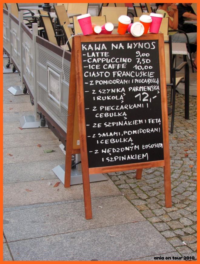 Od niedawna lokal po Orbisie przy ulicy Suraskiej zajmuje Czerwony Fortepian. Nazwa od czerwonego fortepianu, który stoi w środku. Ponoć mają się tam odbywać koncerty na żywo. Moja opinia? Wystrój bardzo ładny, kawa smaczna i w nietypowych filiżankach, lody – duże i smaczne, ceny – normalne, ale obsługa totalnie roztargniona. Jeżeli nic się w tej kwestii nie zmieni, to raczej nie będę tam zachodzić :) A oto tablica stojąca przed lokalem. Strasznie fajny pomysł z tymi kubkami.
