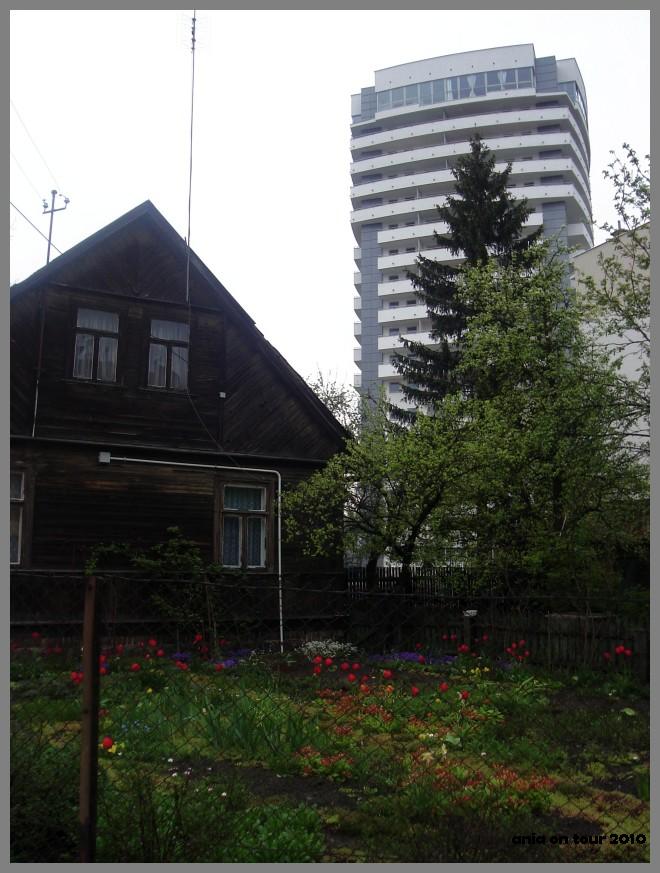 W mieście zawsze warto szukać kontrastów. Ja je na przykład bardzo lubię. I tak oto najwyższy wieżowiec mieszkalny w mieście graniczy ze starym drewnianym domem przy ulicy Wesołej. Ulicy, która należy do najstarszych w Białymstoku i niestety ginie w oczach.
