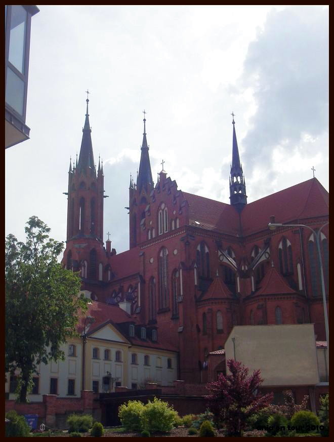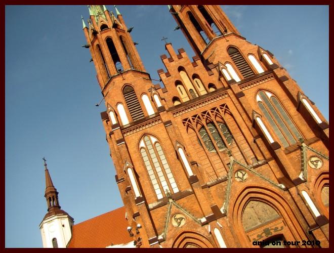 Jeśli chodzi o budowle sakralne, jestem raczej tradycjonalistką. Najbardziej podobają mi się klasyczne, nieudziwnione, proste i poważne. Moim ulubionym kościołem, przynajmniej pod kątem architektonicznym, jest białostocka katedra. Piękny neogotyk z początku XX wieku. Pewnie niewiele osób wie, że nasza fara jest wzorowana na katedrze praskiej (tej warszawskiej), jest jednak nieco mniejsza. Ale na szczęście nie ucierpiała w trakcie II wojny światowej, w przeciwieństwie do warszawskiego kościoła przy ulicy Floriańskiej, i mimo iż jest młodsza, jest jednak już w gruncie rzeczy starsza. W kościele widoczne są powiązania kościoła białostockiego z Wilnem, obecny jest kult Matki Boskiej Ostrobramskiej. W jednej z naw wyeksponowana jest kopia obrazu z Ostrej Bramy, na ogrodzeniu od strony ulicy Kościelnej też można dostrzec płaskorzeźbę obrazu. Dopiero w 1991 roku została powołana archidiecezja białostocka. Niewtajemniczeni mogą zadawać też sobie pytanie, jak to jest, że taki mały barokowy kościół (biały, zwany Starym Kościołem) przyklejony jest do takiej monumentalnej budowli. Otóż jest zupełnie odwrotnie! Stary Kościół, jeszcze z czasów Branickich, to nasz najcenniejszy zabytek, który kryje wieeeleee tajemnic o mieście. Przed około 300 lat był to … jedyny kościół w Białymstoku! Zaborca nie zezwalał na budowę kolejnego … Jak nietrudno się domyślić, tak mały kościół nie wystarczał wiernym. Cudem udało się (ale po wielu próbach) uzyskać pozwolenie na rozbudowanie istniejącego kościoła. Zatem go … ROZBUDOWANO :) Legenda głosi, że carski wizytator został przekupiony dużą ilością złota i piękny kościół pozostał! To oczywiście historia w telegraficznym skrócie, ale szczerze polecam doczytanie w innych źródłach. Warto.
