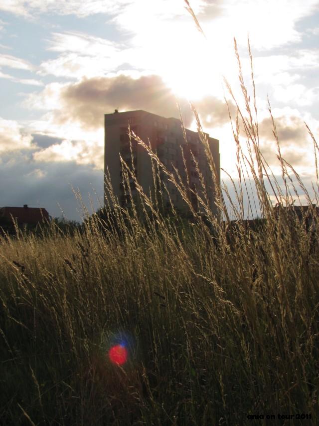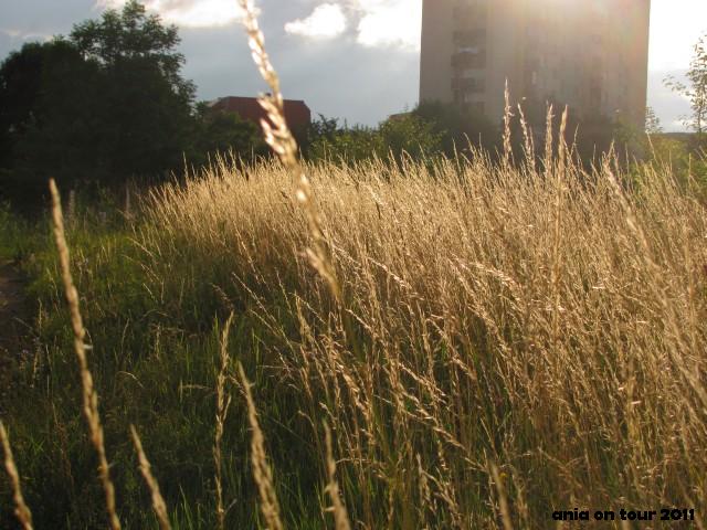 To zdecydowanie miejsce z mojego dzieciństwa!!! Łąka na torach. Chodziłam tam na pikniki, zimą zjeżdżałam na sankach z górki, która dzisiaj w ogóle nie wygląda jak górka. Tamtędy chodziło się też na skróty na ulicę Poleską. Postanowiłam wybrać się tam jakiś czas temu. Pewnego lipcowego popołudnia, świeżo po drobnym deszczu. Jakież było moje zdziwienie, kiedy okazało się, że po dawnej ścieżce prawie nie ma już śladu, a krzaki i drzewa rozrosły się do niebotycznych wręcz rozmiarów! Ledwo przedarłam się przez tę lokalną puszczę. A na łące okazało się, że trawa sięga mi prawie po pas, po ścieżkach też prawie nie ma już śladów. Co się stało z moją łąką?! Zrobiło mi się nawet trochę smutno, w końcu tyle wspomnień, dzieciństwo, a teraz nikt się tym terenem nie zajmuje (a powinna zająć się kolej, w końcu to jej teren …). Na szczęście wyszło popołudniowe słońce i udało mi się zrobić kilka zdjęć. Nieprędko tam wrócę, więc uwieczniłam co się dało. A po przyjściu do domu zrobiłam dochodzenie, czy przypadkiem nie złapałam jakiegoś kleszcza. Chyba zamiast łąka na torach powinnam zacząć mówić dżungla na torach. Byłoby przynajmniej zgodnie z prawdą ;)