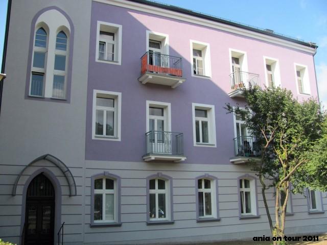 Naprawdę nie wiem, pod wpływem czego architekt może mieć taką wizję … Stoi sobie kamienica, zabytkowa, z przełomu wieków XIX i XX, jak na zniszczony w trakcie wojny Białystok całkiem niezły wynik. Stoi sobie nienaruszona w pierwotnym miejscu, po przebudowie ulicy Częstochowskiej ląduje przy samej jezdni i nagle coraz więcej ludzi dowiaduje się o jej istnieniu. Przez kilka lat stoi szara i nieremontowana. Aż w końcu – hurra, będzie remont! I na tym euforia się kończy. Z całkiem ciekawej kamienicy powstaje styropianowa bryła o nijakim charakterze, zabytek zostaje upiększony elementami, których pierwotnie nikt nie przewidział. I gdyby jeszcze tego było mało – zostaje pomalowana na FIOLETOWO. Naprawdę nie znajduję żadnego usprawiedliwienia dla pani Marty Antonienko, która wpadła na wszystkie te radosne pomysły. Nie wiem, co pani  architekt miała na myśli, nie wiem, co chciała osiągnąć. Ja jej działania mogę podsumować jednoznacznie – zepsuła nam zabytek i przy okazji zaburzyła ład w całym otoczeniu. Fiolet nie współgra z oliwkowym i łososiowym (a takie elewacje mają sąsiednie budynki). A może pani architekt marzyła o prowokacji? Co z tego wyszło mogę krótko podsumować: wstyd. A pani architekt zaprezentowała styl „wieś tańczy i śpiewa”. Szkoda tylko, że w samym centrum miasta! Polecam artykuł z Kuriera Porannego. Jak widać niezadowolonych jest więcej: Kamienica przy ul. Częstochowskiej 3 została ocieplona