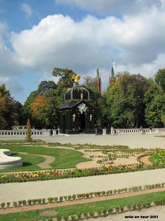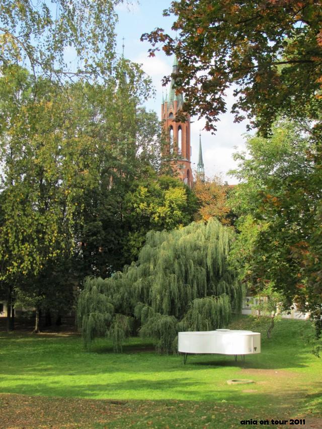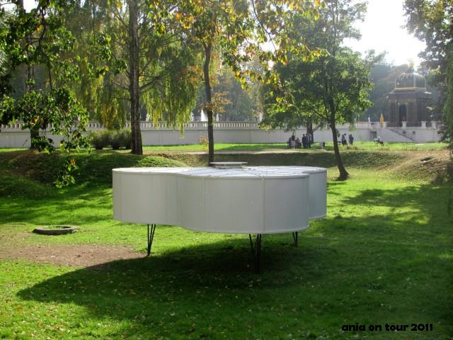 Na miejscu dawnego stawu w ogrodzie dolnym stoi artystyczna konstelacja stworzona na potrzeby akcji „Podróż na Wschód” organizowanej przez Galerię Arsenał. Ten osobliwy biały fortepian wygląda całkiem ciekawie pod wierzbą płaczącą …