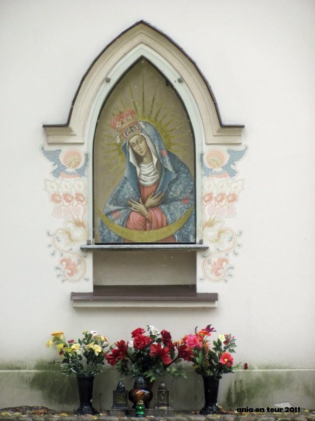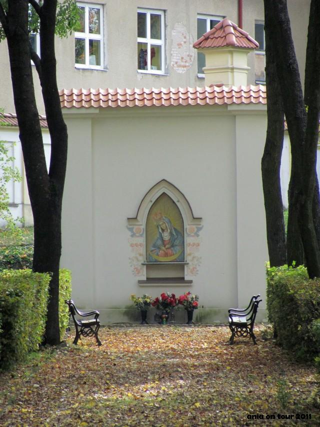 Mam też kilka zdjęć z ogrodu angielskiego.Sceneria na pierwszej fotce jest iście angielska. Brakuje tylko mgły. Natomiast ścianka z obrazem Matki Boskiej Ostrobramskiej to moje nowe odkrycie. Stoi w samym rogu ogrodu od strony Plant. Ładna.