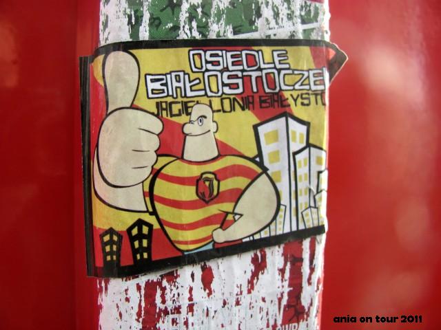 O tym, jak Jagiellonia spisuje się w tym sezonie, nie trzeba chyba nikogo informować. Panowie grają słabo, robią z siebie coraz większe pośmiewisko, a obecnie strachem napawa również ostatnia decyzja włodarzy klubu – Hajto ma zostać trenerem Jagi-Łamagi:) Moją złość podsyca jeszcze jedna poważna sprawa – nastawienie władz miasta do tego klubu. Szerokim echem odbiła się decyzja o przekazaniu pieniędzy przewidzianych na Pozytywne Wibracje Festival na „promocję” Jagiellonii. Panowie mają za te pieniądze (1,5 mln złotych!!!) biegać po murawie rozgrzebanego stadionu z cudownym logo wschodzącego miasta – no comment. Lokalne władze są mianowicie ślepo zapatrzone w ten klub i zapominają chyba, że nie jest to i nigdy nie będzie FC Barcelona, która faktycznie robi ogromną reklamę tego miasta. Pozbawianie Białegostoku Pozytywnych Wibracji na rzecz tej rzekomej „promocji” przez sport jest po prostu niedorzeczne i grubymi nićmi szyte! Między innymi dlatego taką złość wzbudziła we mnie ta naklejka, którą poniżej Wam prezentuję. Nawet stojąc spokojnie na przystanku na własnym osiedlu nie da się uciec od tej kibicowskiej manii! Ja się odcinam. Tej pokręconej i skorumpowanej drużynie mówię „nie” i nie życzę sobie, żeby robiła nam taką antyreklamę!