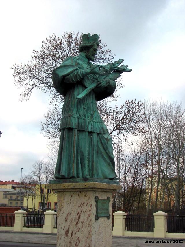 Według historyków aż sto pięćdziesiąt lat przyszło nam czekać na powrót rzeźby Jana Nepomucena, zwanego świętym „od powodzi”, na most na ulicy Świętojańskiej. Za czasów Jana Klemensa Branickiego jego figura stała nad Białką mniej więcej w tym miejscu, w którym ustawiono ją ponownie. Na szczęście ktoś zadziałał w tym wypadku kompleksowo, ponieważ przy okazji wyremontowano też gruntownie mostek nad rzeką :) Jeszcze nie tak dawno wzdłuż chodnika stały dwie szare metalowe barierki, a o żadnych zdobieniach nikt nie słyszał. Most szczęśliwie powrócił jednak do swojego przedwojennego wyglądu i prezentuje się dobrze. Szkoda, że otoczenie już niezabytkowe … Ciekawy opis przebojów wokół rzeźby znajdziecie na stronie TVP Białystok (Odsłonięto pomnik św. Jana Nepomucena), natomiast na stronie Polskiego Radia Białystok można wysłuchać relacji z powrotu Jana Nepomucena nad białostocką Białkę (Rzeźba Jana Nepomucena znowu w Białymstoku).