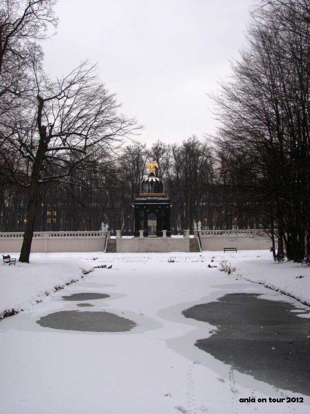 Zawsze lubiłam oglądać zimowe zdjęcia parków latem. Dla ochłody :) Wtedy też zawsze nachodzi mnie myśl, że przyjemnie jest spacerować po pustym parku po śniegu albo w śniegu, a później ogrzać się w jakimś ciepłym wnętrzu. W moim przypadku więcej tu jednak wyobraźni niż prawdy, ponieważ zdecydowanie nie należę do miłośników tej pory roku. Śnieg w mieście podoba mi się tylko od 24.12. do 06.01., gdy spełnia funkcję dekoracyjną :) W tym roku zima jednak pomyliła terminy i dopiero teraz się zaczyna. Szkoda, ale z drugiej strony zawsze to mniejsze zło niż śnieg od końca listopada. U Branickich było dziś po godzinie 15:00 nad wyraz spokojnie. Do pałacu zmierzali tylko nieliczni studenci. Staw wyglądał na lekko zamarznięty, a kaczki wyemigrowały w okolice rur ciepłowniczych nad Białką. Mój krótki spacer nie był nawet taki zły, ale na pewno nie tak idylliczny, jak to sobie wyobrażam latem …