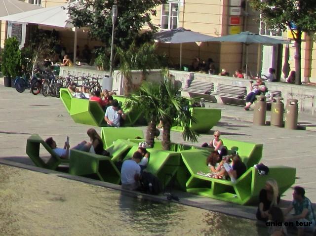 Moim niedoścignionym z polskiej perspektywy ideałem siedzisk w przestrzeni publicznej są fotelo-leżanki z dziedzińca wiedeńskiego MuseumsQuartier, na którym życie kwitnie zawsze i trudno upolować wolny obiekt … Patrzę tak na te zdjęcia i dochodzę do wniosku, że znowu (który to już raz?!) zaczynam odczuwać „wien-weh” …