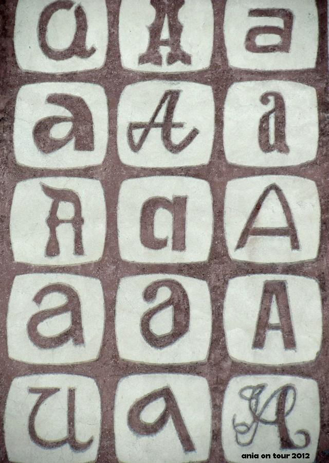 „A” jak Ania. Zatem bezsprzecznie coś dla mnie :) Nieśmiało wracam do wątku o scraffitach. Ci z Was, którzy zaglądają tu nieco krócej, mogli nie natknąć się na mój wpis ludowo. kolorowo., w którym wyraziłam moją sympatię do tych form w przestrzeni miejskiej i poleciłam kilka stron/artykułów na tenże temat. Takich ściennych „malunków” jest w Białymstoku naprawdę dużo. Od lat noszę się z zamiarem sfotografowania ich wszystkich, ale otwarcie przyznaję, że nie zawsze mam w sobie wystarczająco dużo cierpliwości. Wymaga to jednak spędzenia kilku ładnych minut przez ścianą jednego budynku, a ja w Białymstoku jestem przecież zawsze „na krótko”. Ale postaram się! Jest w końcu co uwieczniać: zawody, sowy, znaki zodiaku, wojsko polskie, ubrania z PRL-u, uczty polskie, zwierzęta polskie … Patrzcie uważnie do góry! Dziś taka namiastka. Kamienica z kawiarnio-księgarnią Akcent. Cała w litery „A”. Moim zdaniem genialna sprawa ;)