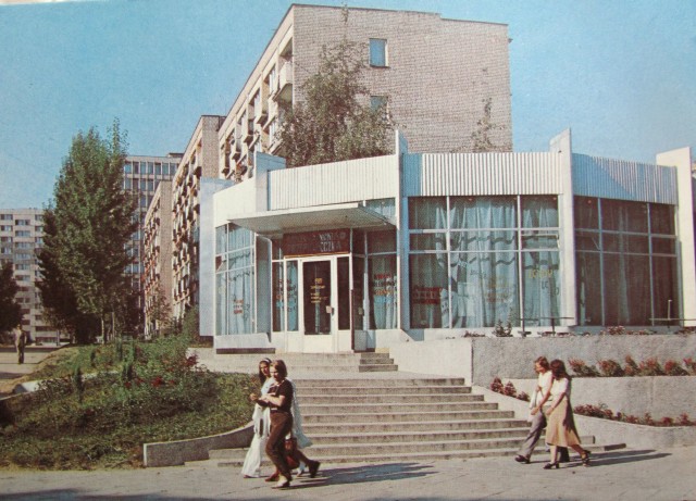Idąc za ciosem, wrzucam kolejną pocztówkę z bryłą „dożynkową”. Kiedyś Herbaciarnia Przepióreczka, obecnie Odeon. Jeden z dwóch dawnych pawilonów wystawowych przy ulicy Akademickiej. Na miejscu dawnej Kasztelanki mieściła się przez długie lata Escapada, a od niedawna miejsce po niej zajmuje Veranda (z Escapady na VERANDĘ).