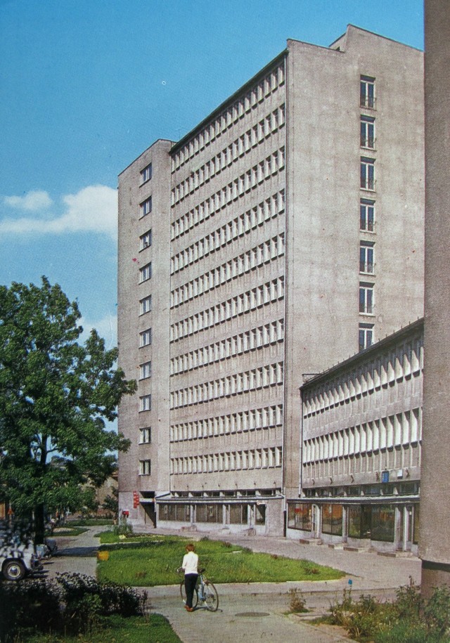 O tym, ile może zdziałać nowa elewacja, nie trzeba nikogo przekonywać. W Białymstoku obecnie tynkuje się na potęgę, nawet takie relikty jak bloki przy ulicy Sienkiewicza od strony Rynku Kościuszki doczekały się właśnie remontu. Piszę w liczbie mnogiej, gdyż za przykładem tego środkowego powinny iść i kolejne :) Ciekawie ogląda się też zdjęcia gmachów lub bloków dobrze nam znanych, ale jeszcze ze starą betonową elewacją. Poniżej zestawienie trzech pocztówek ze zbiorów babci. Widzimy na nich Hotel Cristal, I Urząd Skarbowy i bloki przy ulicy Kalinowskiego (te akurat otynkowano stosunkowo niedawno, więc doskonale pamiętam je jeszcze w tym szarym wydaniu).