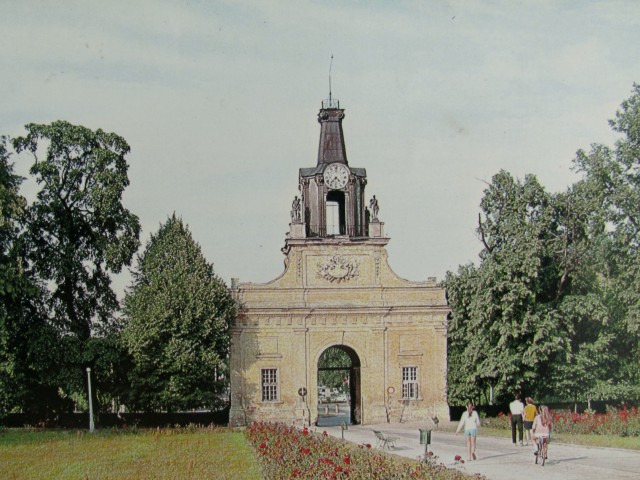Białystok bez Pałacu Branickich po prostu nie istnieje. To właśnie on był, jest i będzie symbolem naszego miasta. Znamy go właściwie na pamięć (a przynajmniej powinniśmy!). Kto z nas nie chodził tam jako dziecko na niedzielne spacery i nie pozował do zdjęć z rzeźbami w części ogrodowej lub, już po ich usunięciu do remontu, na cokołach? Myślę, że widok z pierwszej pocztówki nas nie zaskoczy – w sumie nawet nie tak dawno ogród francuski prezentował się mniej więcej w taki sposób. Ale mam do tej pocztówki sentyment – jako mała dziewczynka nie mogłam wyjść z podziwu nad opalenizną tej pani w niebieskim. A i dziś podoba mi się ubranie pani po prawej – zmieniłabym tylko biel na czerń :) Za to widok bramy zaskoczy chyba wiele osób. Tyle zieleni?! Ja tych czasów nie pamiętam. Może ktoś z Was, Szanowni Czytelnicy, potrafi podać w przybliżeniu rok wykonania tego zdjęcia?