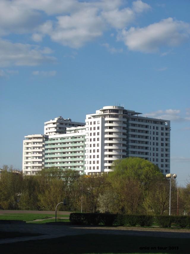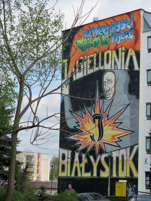 Nadejszla wiekopomna chwila – udało mi się zachęcić do przyjazdu do Białegostoku Janusza, który do tej pory (jak widać w postach poniżej) coraz intensywniej dostarczał mi ciekawe linki miejsko-historyczne. Pomyślałam, że jest to całkiem sprzyjająca okazja, aby przedstawić Wam naszą trasę zwiedzania. Doskonale wiemy, że Białystok można „załatwić” w kilka godzin, chyba że wchodzi się do muzeów, galerii itd. My tym razem skupiliśmy się jednak na tym, co na zewnątrz, a przy kolejnej wizycie pójdziemy nieco głębiej :) Oprócz Białegostoku zawitaliśmy też do Kruszynian, aby zwiedzić meczet, mizar i skosztować słynnego pierekaczewnika. Wracając, zahaczyliśmy o Supraśl. Byliśmy również w Tykocinie i w Choroszczy (tu mała zmiana planów – pogoda 3 maja nie pozwoliła na zwiedzanie Twierdzy Osowiec …). Co można u nas pokazać na tak zwany pierwszy rzut? Na samym początku runda do moim osiedlu. Była piękna słoneczna pogoda, a ja sama już dawno temu spacerowałam po Białostoczku. Osiedle bez większych zmian, ale jednak ładnieje. Tynkują bloki, zamontowano nowe place zabaw. Niebawem rozpocznie się (dla mnie niestety) budowa przedłużenia ulicy Sitarskiej i ten lokalny spokój odejdzie w zapomnienie :( Ludzi na osiedlu jak na lekarstwo. Bawiących się dzieci brak. Ale przestrzeń pozostała. Uwielbiam te szerokie chodniki przy ulicy Radzymińskiej. Jeździło się tam na rowerze, oj jeździło!