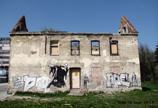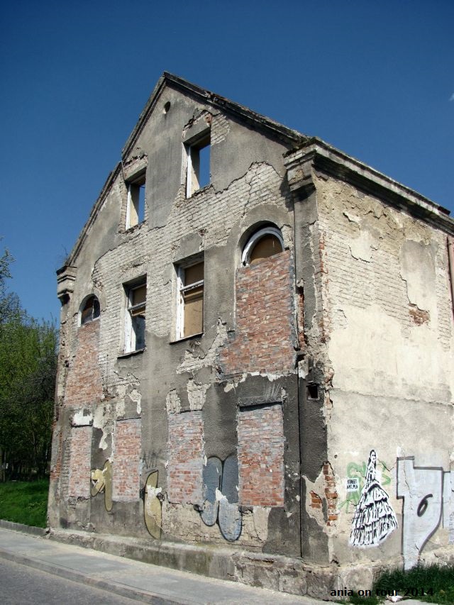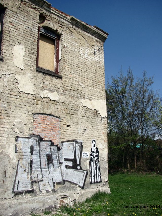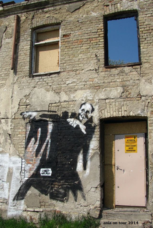 O istnieniu tych malowideł wiedziałam już od dawna (no dobrze, poza kotem, bo z perspektywy ulicy trudno go zobaczyć), ale nie mogłam się zmobilizować, żeby wreszcie zrobić im zdjęcia. Dziś przejeżdżaliśmy przez ulicę Kijowską i postanowiłam skorzystać z okazji. Nagle dopadła mnie myśl, że przecież przy mojej kolejnej wizycie w Białymstoku jednej z tych kamienic może już nie być. Budynek przy Kijowskiej 1 jest przecież zabytkiem, ponoć ma w nim powstać nawet muzeum, za do bardzo mocno trzymam kciuki. Ale co do wypatroszonego budynku (można tak jeszcze o nim mówić?) nie mam już takiej pewności. Dlatego pod wpływem chwili spytałam, czy możemy tu na chwilę stanąć. Graffiti z okazji przedstawienia „Upiór w operze” można spotkać na rożnych budynkach, barakach, a nawet na rozdzielni prądu (odsyłam do postu Wokół (nielubianej) opery) w bezpośrednim sąsiedztwie instytucji przy ulicy Odeskiej 1. Lubię takie miejskie drobiazgi, bo sprawiają, że nawet na dawne opuszczone kamienice z Chanajek milej się patrzy, choć niezmiernie mi ich szkoda. Na Kijowskiej budują się już nowe bloki (to chyba jedna z niewielu rzeczy, która w Białymstoku wychodzi, jednak ku ogólnemu niezadowoleniu mieszkańców), które całkowicie zmienią charakter tej od zawsze biednej i przez lata zaniedbywanej części Białegostoku. Dlatego spieszcie z aparatami, jeśli chcecie uchwycić coś jeszcze z tych dawnych Chanajek. Ja już tam byłam, nawet kilka razy, o czym przy okazji chętnie przypomnę: Chanajki