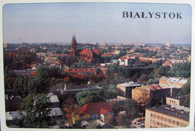 Wczesna jesień w Białymstoku. Jedno z częściej spotykanych ujęć miasta. Dwa najbardziej charakterystyczne kościoły z grodu nad Białą na jednym planie. Niemalże idealnie wpisane w perspektywę Rynku Kościuszki i ulicy Lipowej. Przez niektórych określane infantylnie jako kościół biały i kościół czerwony. Nie lubię tych uproszczeń w mowie ludzi dorosłych. To taka krótka dygresja. A pocztówka sama w sobie bardzo zwyczajna, ale chyba przez to po prostu ładna.