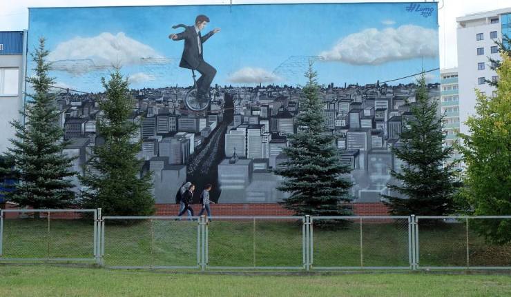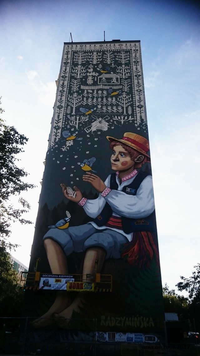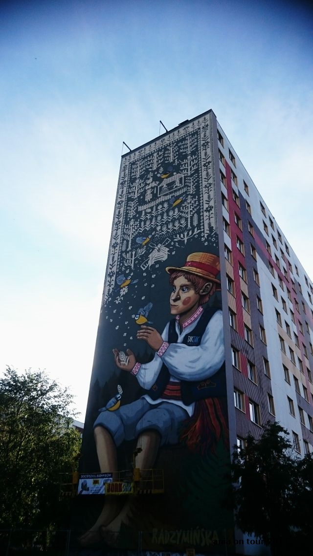 Niedawno miłośników sztuki ulicznej zelektryzowała wiadomość, że w Białymstoku powstaje kolejny mural w ramach lubianej przez wielu akcji Folk on the Street. „Tkana opowieść o chłopcu i pieczeniu chleba” prawdopodobnie nie zdobędzie statusu muralu kultowego, jakim cieszy się od kilku lat słynna już nie tylko w Polsce Dziewczynka z konewką autorstwa Natalii Rak. Malowidło z ulicy Radzymińskiej 18 jest jednak największym muralem inspirowanym kulturą ludową w Polsce i choćby dzięki temu ma szansę zapisać się w annałach polskiej historii street artu. Warto podkreślić, że jest to już drugi mural, który ozdabia osiedle Białostoczek i został ulokowany niemalże w jego centrum. Mianem pierwszego muralu na moim osiedlu może poszczycić się malowidło „Balans” na ścianie Zespołu Szkół Elektrycznych przy ulicy 1000-lecia Państwa Polskiego: