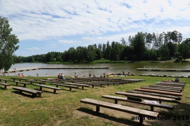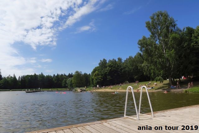 Nad zalewem byliśmy w pierwszą sobotę wakacji. Wśród plażowiczów dominowali tak zwani lokalsi, a tłumów nie stwierdzono. Zgodnie uznaliśmy, że panuje tam wciąż taka miła atmosfera retro. Nie ma nachalnej małej gastronomii – dopatrzyliśmy się tylko jednego food-tracka. I to jest fajne – kiedy przyciśnie nas głód, możemy coś przekąsić, ale otoczka nie dominuje nad zalewem. Nie gra głośna muzyka. Niektórzy grillowali, inni opalali się na plaży lub na pomoście, a co odważniejsi kąpali się. Woda była dość zimna :) Na miejscu można wypożyczyć kajaki i rowery wodne. I wciąż można podziwiać zalew z pozycji widza w tamtejszym amfiteatrze :) To ciekawe rozwiązanie, podobnie jest w Puńsku. To zresztą niejedyne skojarzenie z moją ulubioną Suwalszczyzną. Podobnie pozytywne emocje towarzyszyły mi ostatnio na plaży w Starym Folwarku nad Wigrami, która mimo rewelacyjnego położenia wciąż opiera się komercjalizacji. Tam również można plażować w stylu retro :) Także jeśli na samą myśl spędzania wakacji na przykład w Augustowie nad jeziorem Necko robi się Wam słabo, a nie chcecie całkowicie rezygnować z plażowania, sprawdźcie Stary Folwark (i pójdźcie przy okazji do tamtejszego Muzeum Wigier).