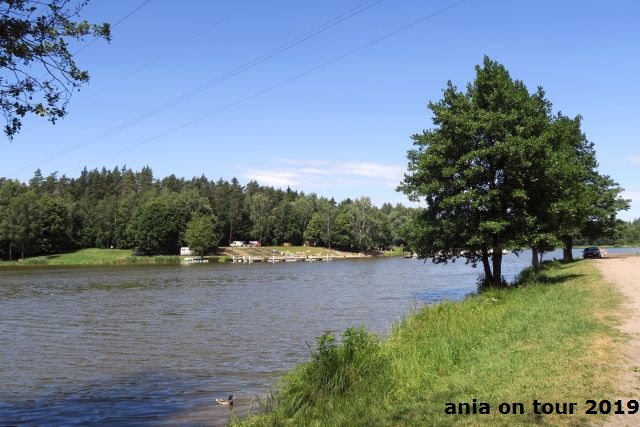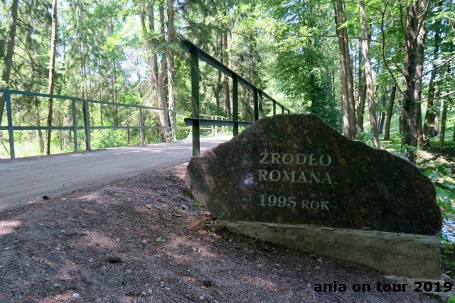 Samochodem dojedziecie również na drugą, plażową stronę zalewu, jednak my woleliśmy zaparkować w cieniu i przejść się kawałek pieszo. Również i Wam polecam spacer przez mostek ze względu na słynne „źródło Romana”. Bez problemu je odszukacie – przy mostku znajduje się tablica pamiątkowa, natomiast tuż obok źródła wmurowano również mniejszą tabliczkę z pełniejszymi informacjami: