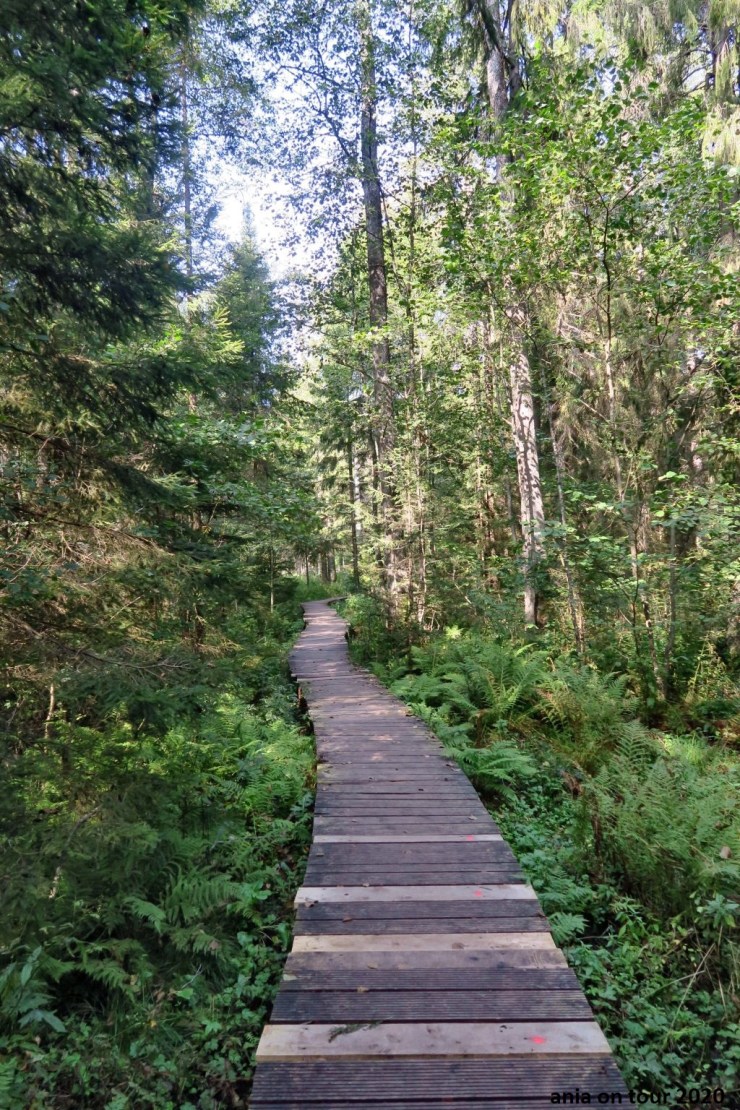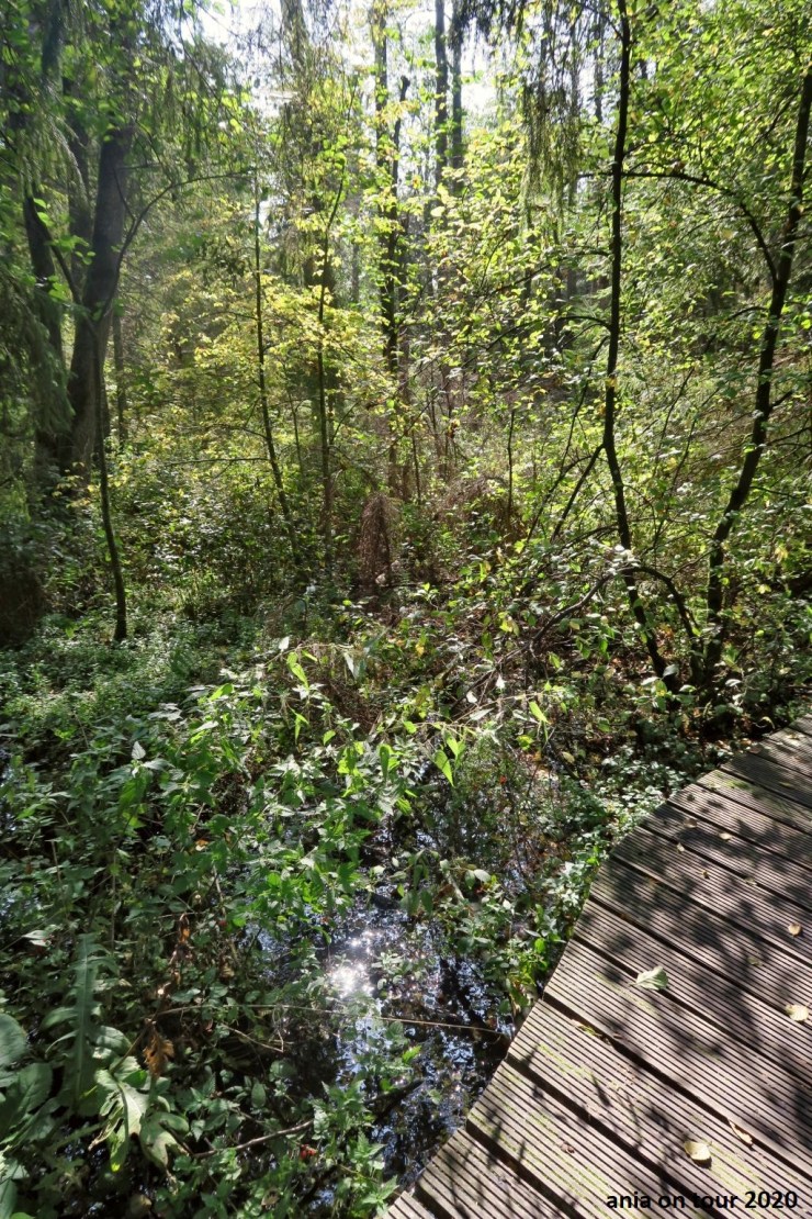 Początkowy odcinek trasy jest zdecydowanie najbardziej wyboisty. Dopiero po pokonaniu kilkuset metrów rozpoczyna się rozpościerająca się nad źródliskami kładka spacerowa. Jej stan nie jest już niestety idealny, dlatego warto patrzeć również pod nogi, a nie tylko delektować się leśnym krajobrazem. Także ławki i tarasy wymagają naprawy. Pociesza fakt, że w kładce wymieniane są obecnie spróchniałe fragmenty. Mam nawet dowód foto: