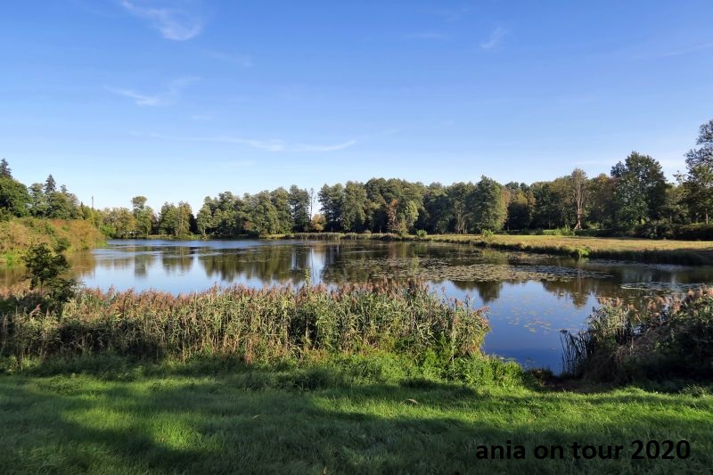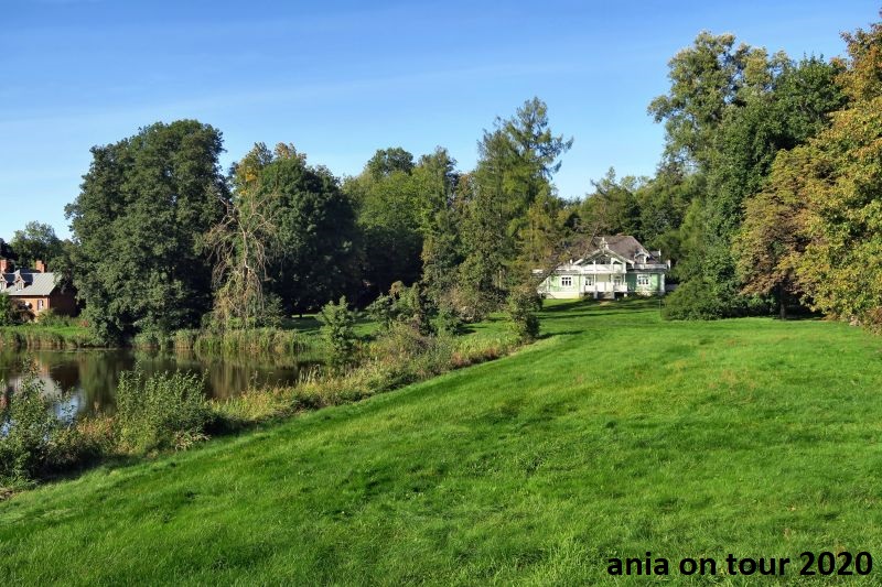 Jakie wrażenie wywarł na mnie Park Pałacowy? Odpowiem szczerze: mieszane. Oczyma wyobraźni widzę rozległy zadbany teren, ale w realu muszę spoglądać pod nogi, żeby nie potknąć się na popękanej asfaltowej lub brukowanej nawierzchni. Nie mogę przejść obojętnie obok zniszczonych schodów, starych i zaniedbanych ławek i latarni rodem z PRL-u. Miejsce z absolutnie gigantycznym potencjałem, w sercu którego mieści się siedziba najstarszego w Polsce Parku Narodowego, nie zachwyca tak jak powinno. Jest dość mocno zaniedbane, „puchate” jak rzekłby mój kolega, czyli nieodnawiane od lat. Krajobrazy piękne, ale infrastruktura zaskakująco zła. Mijając Bramę Pałacową lądujemy nagle na krzywym jak diabli bruku i idziemy w stronę prywatnych zabudowań. Spacer z wózkiem raczej nie należy do relaksujących… :)