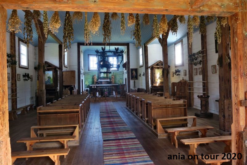 Nie mam żadnego zdjęcia z Brańska, ale to właśnie przez Brańsk większość turystów przejeżdża w drodze do Korycin. To niewielkie miasteczko, które lata świetności ma za sobą i poza świątyniami nie może się dziś pochwalić wielkimi zabytkami. Ale! Zdarzyło mi się kiedyś obejrzeć odcinek Kuchennym Rewolucji, w których postawiono na nogi tamtejszą restaurację. I właśnie w drodze powrotnej z Ziołowego Zakątka zajechaliśmy tam na obiad. Ziemia Brańska Gospoda mieści się w typowym PRL-owksim pawilonie, ale w środku jest całkiem schludnie i sympatycznie. A co najważniejsze – bardzo smacznie. Porcje są ogromne, jedzenie naprawdę dobre, ceny normalne. Na miejscu kupimy też wiele produktów do domowej spiżarni i dwa rodzaje piwa. Wyszliśmy stamtąd najedzeni i obkupieni w lokalne dobra… Szczerze polecam!