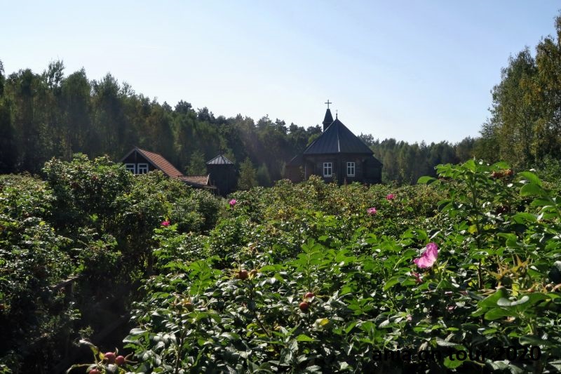 Założony w 2007 roku Podlaski Ogród Ziołowy w 2011 roku otrzymał status ogrodu botanicznego i jest jedynym tego typu ogrodem na Podlasiu. Wstęp jest biletowany, ale nie są to wygórowane kwoty. Wejściówki kupimy w kasie ulokowanej w drewnianej bramie. Na terenie ogrodu zgromadzono mnóstwo roślin leczniczych i aromatycznych, znajdują się tam również stare drewniane zabudowania, w których ulokowano wystawy tematyczne. W jednym ze starych domów działa kawiarnia, ale z uwagi na koniec września i środek tygodnia była nieczynna. W sezonie można tam jednak skosztować wody różanej lub lodów z róży. Patrz: Domek Różany