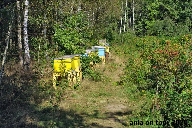 Nieopodal znajdują się liczne ule. Zadbano nawet o stosowną tabliczkę z ostrzeżeniem, że to pszczoły są tutaj w swoim naturalnym środowisku.