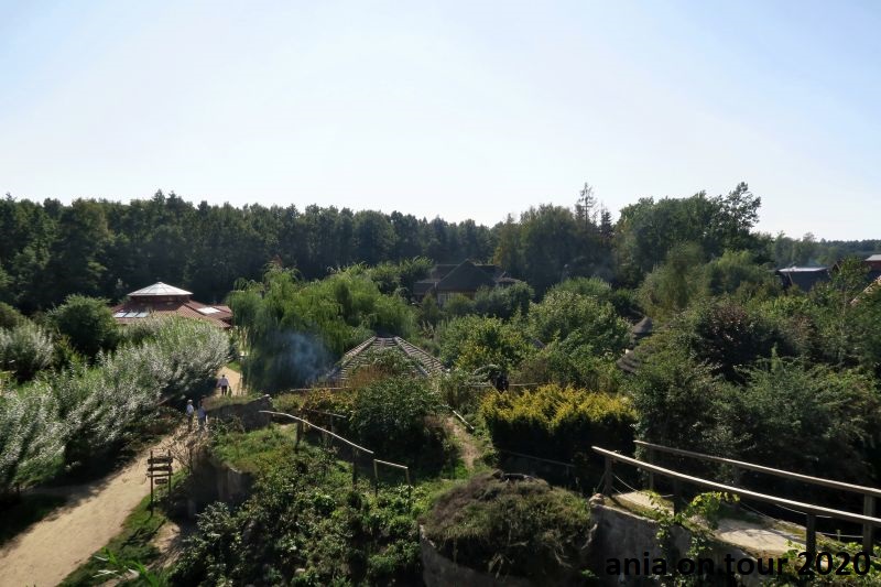 Pierwszy szok to gigantyczny parking. Środek tygodnia, koniec września, a ledwo znaleźliśmy miejsce, żeby zaparkować naszego kombiaka. Rejestracje z całej Polski, lokalnych stosunkowo niewiele. Mina nam trochę zrzedła, bo już widziałam oczyma wyobraźni te nieprzebrane tłumy ludzi. Jednak obawy okazały się mocno na wyrost – teren jest tak duży, że na naszych ścieżkach nie spotkaliśmy praktycznie nikogo. Domyślam się, że w sezonie i w weekendy może być nieco tłoczniej…