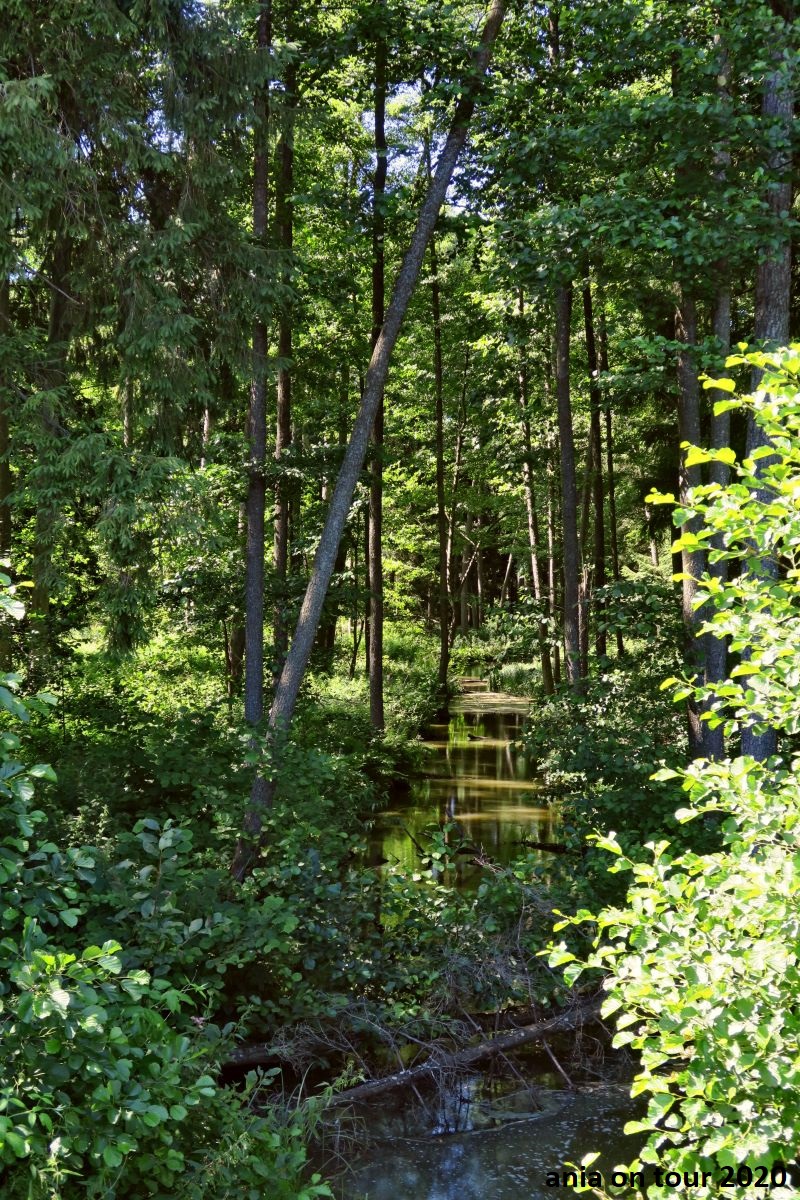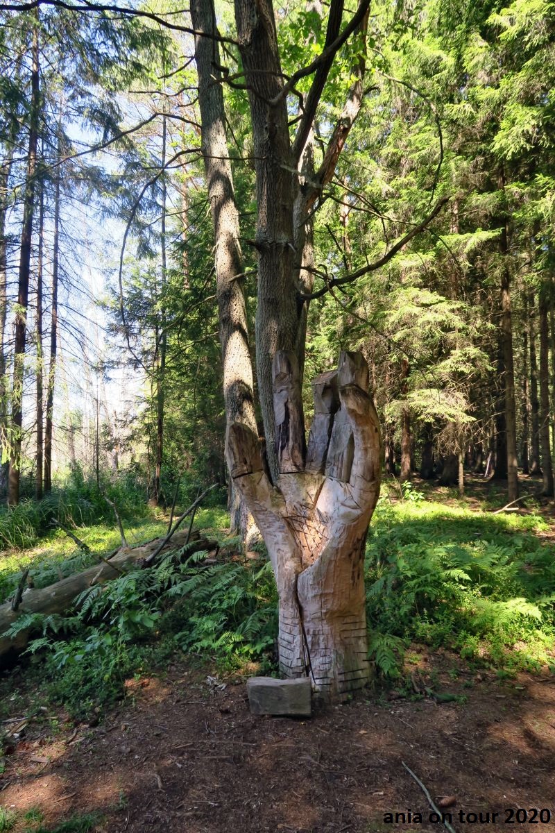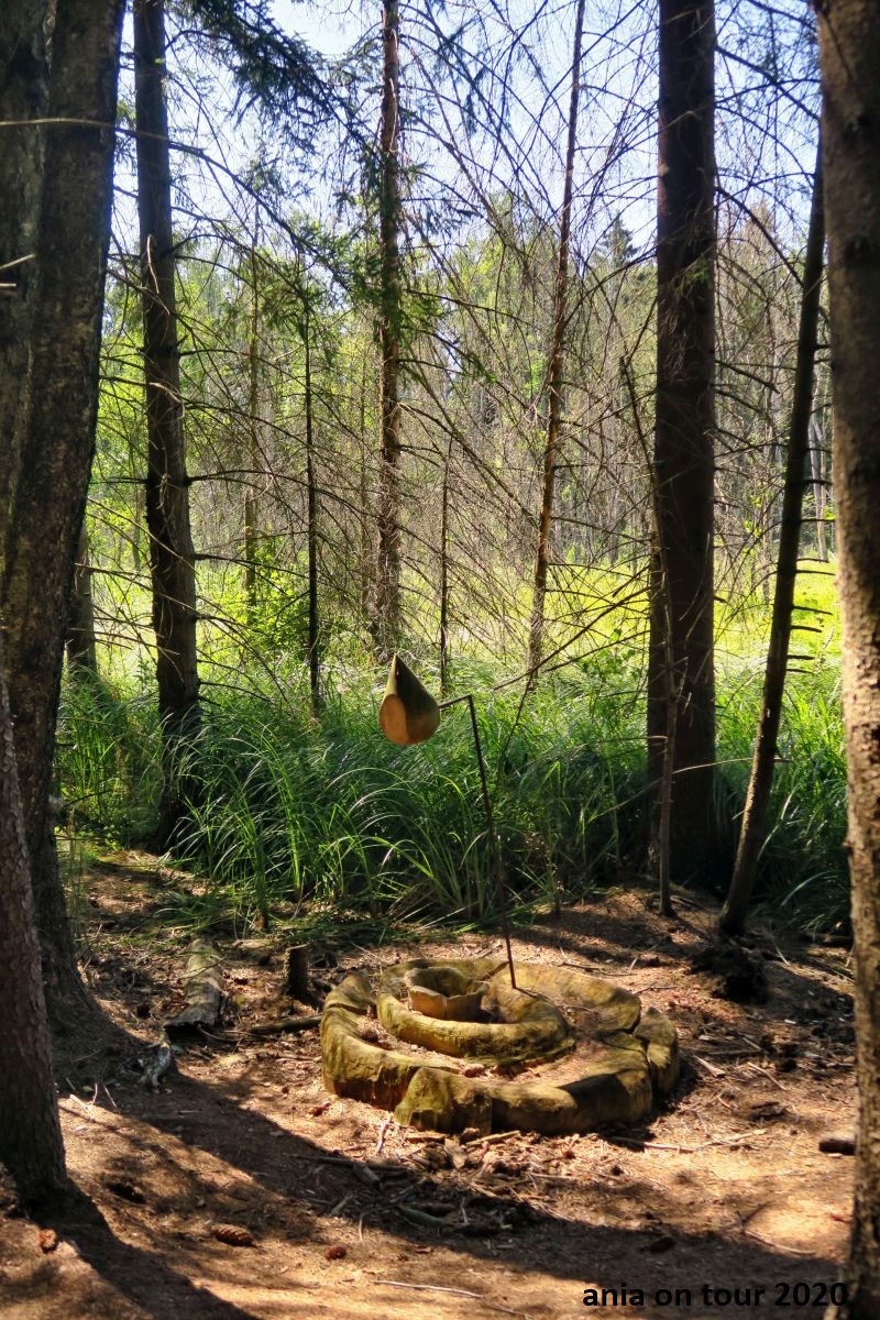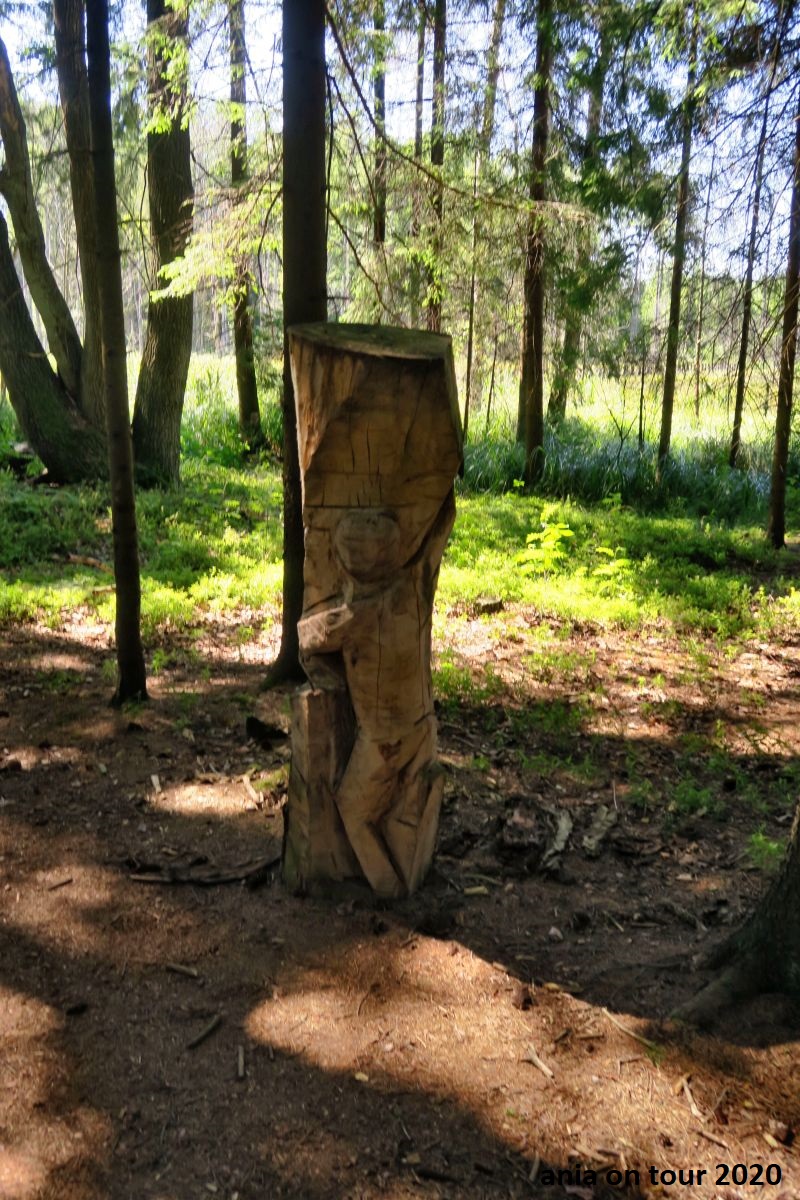 Warto udać się w kierunku Mogiły Powstańców Styczniowych (oznakowanie jest bardzo czytelne). Tym razem nie dotarliśmy do samej mogiły w uroczysku Piereciosy i zakończyliśmy naszą wędrówkę przy leśnej galerii rzeźb, do której zmierza się po kładkach i pomostach. Można poczuć się jak w Poleskim Parku Narodowym.