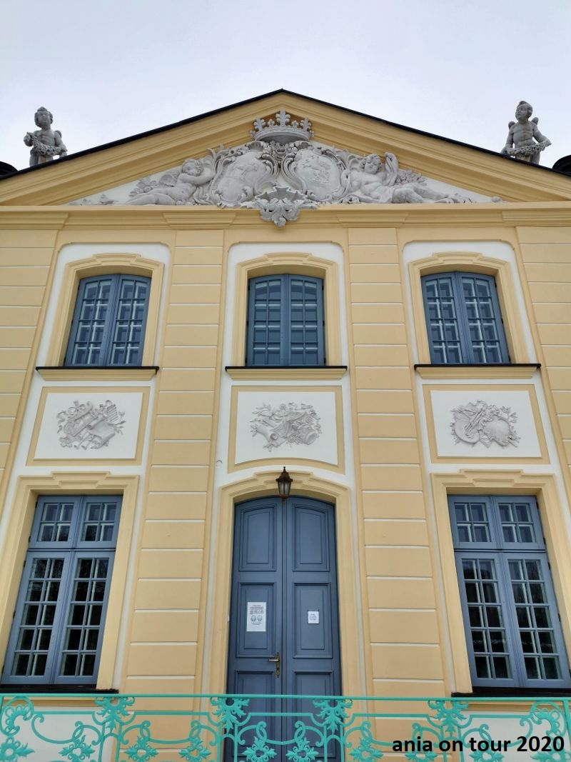 Zwróćcie uwagę na herby nad wejściem do pałacu – to Ciołek Poniatowskich i Gryf Branickich:
