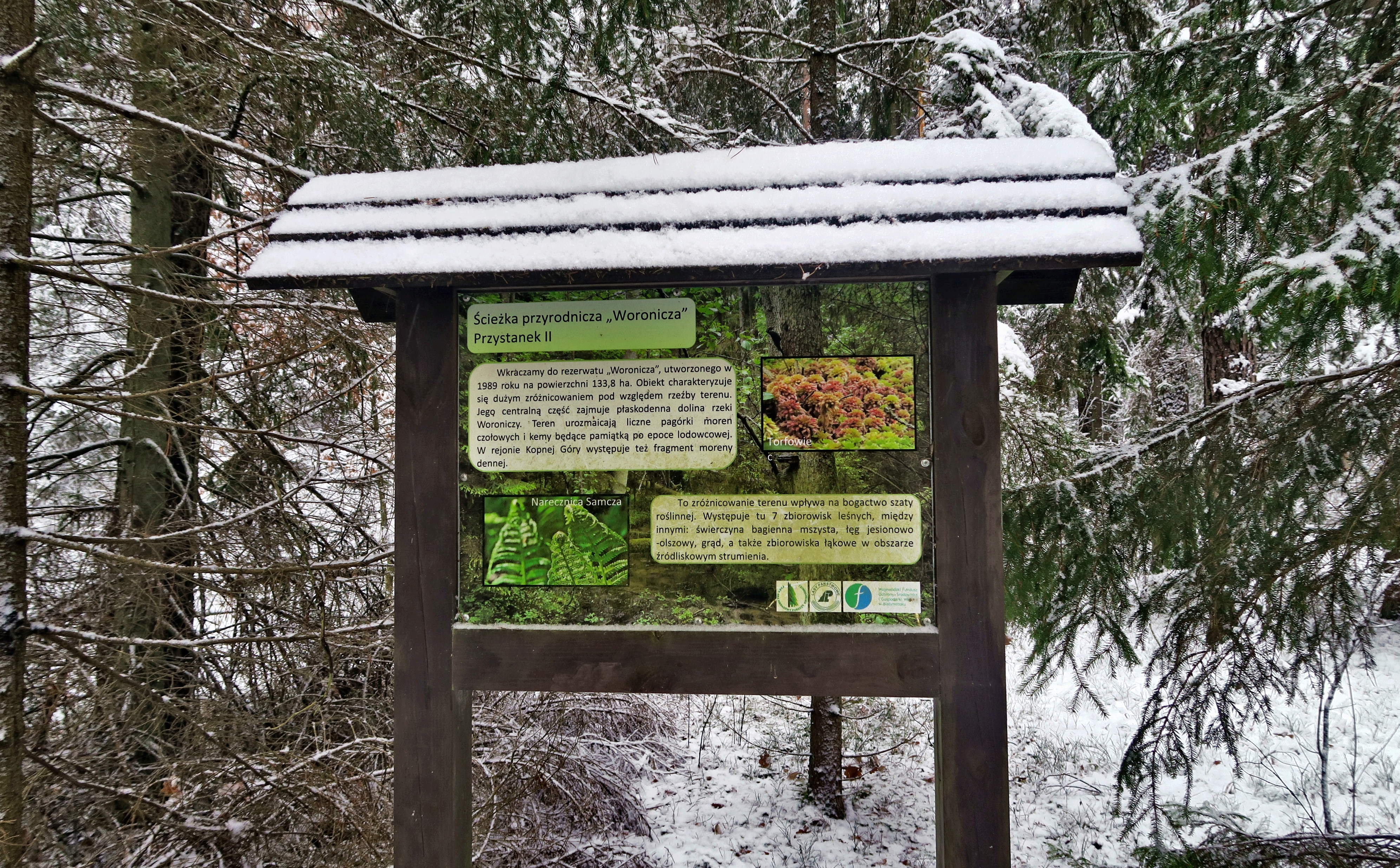 Rezerwat Woronicza utworzono w 1989 roku w celu ochrony doliny strumienia Woronicza ze strefą źródliskową i rozległym torfowiskiem niskim. W trakcie wędrówki ścieżką Woronicza natrafimy na przystanki z tablicami informacyjnymi.
