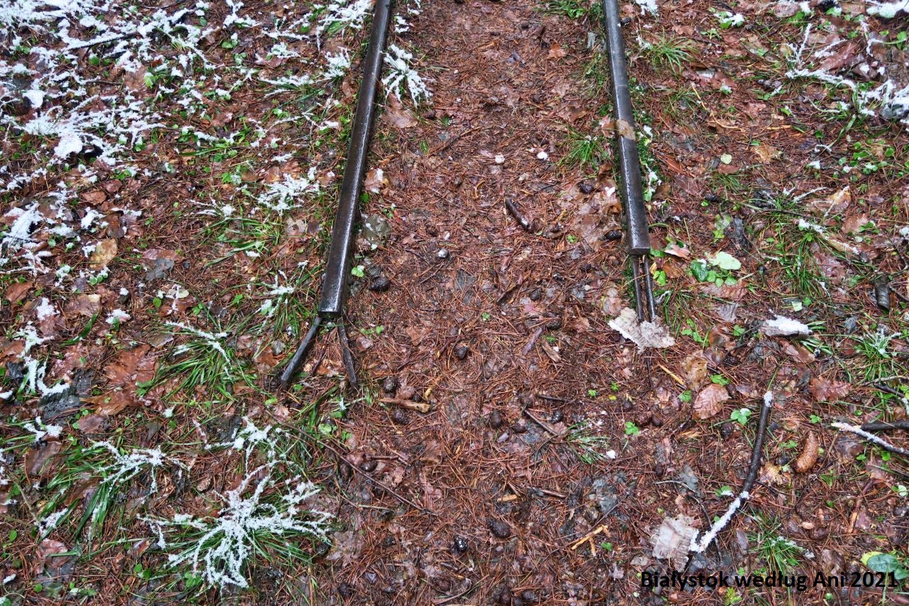 Jedziemy do Arboretum w Kopnej Górze, skręcamy w lewo i po 450 metrach po prawej stronie rozpościera się ogromna polana. To teren dawnej składnicy drewna. Do dziś zachowały się fragmenty torów kolejki wąskotorowej o rozstawie torów 600 mm, którą wywożono z lasu drewno. Kolejka została zbudowana przez Niemców w 1916 roku, aby usprawnić wywóz drewna z puszczy. W późniejszych latach została ona znacznie rozbudowana. Ostatni kurs odbył się w 1991 roku. Do dziś zachowano odcinek toru między Czarną Białostocką a Kopną Górą (pierwotnie sieć liczyła 150 km długości). Na polanie natkniemy się na zwrotnicę, a wzdłuż torów możemy maszerować po pobliskim Rezerwacie Woronicza. To najciekawszy fragment trasy spacerowej po tym rezerwacie. Zachowała się jeszcze infrastruktura kolejowa. Tor przebiega również malowniczo przez mostek nad strumieniem Woronicza. Kierunek trasy oznaczony jest drewnianymi strzałkami, także trudno się zgubić.