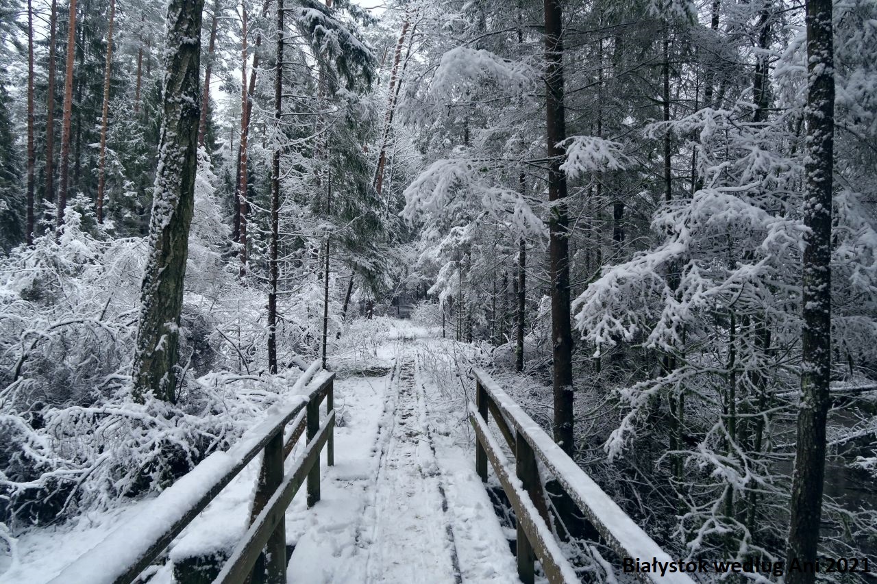 Puszcza Knyszyńska to błogosławieństwo dla Białegostoku, zawsze to powtarzam, ale miniony rok jeszcze bardziej utwierdził mnie w tym przekonaniu, że tuż za granicami miasta mamy wielki przyrodniczy skarb i doskonałe miejsce rekreacji i obcowania z przyrodą. Kiedy usłyszałam w prognozie pogody, że w weekend na Podlasiu spodziewane są opady śniegu, szybko podjęliśmy decyzję o wyjeździe do Białegostoku. Jak się okazało, była to decyzja słuszna, ponieważ w nocy z piąteku na sobotę nasypało! Na oku miałam już od dawna Rezerwat Woronicza, ale chyba nie mogłam go sobie wyobrazić w lepszych okolicznościach przyrody, chociaż trudno mówić o podziwianiu flory w śnieżnych zaspach. Powrót inną porą roku wskazany!