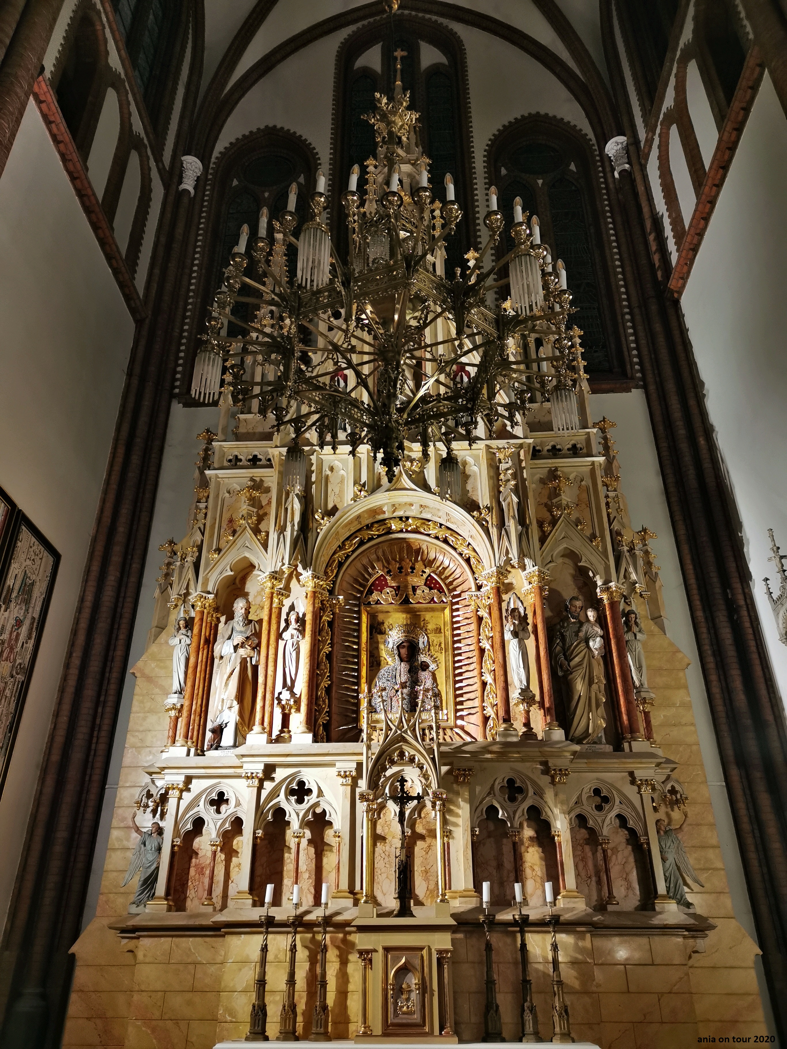 Niedawno ołtarz został odrestaurowany i prezentuje się naprawdę pięknie, szczególnie w słoneczne poranki i przedpołudnia. Ja mam jednak kilka zdjęć wykonanych wieczorem.