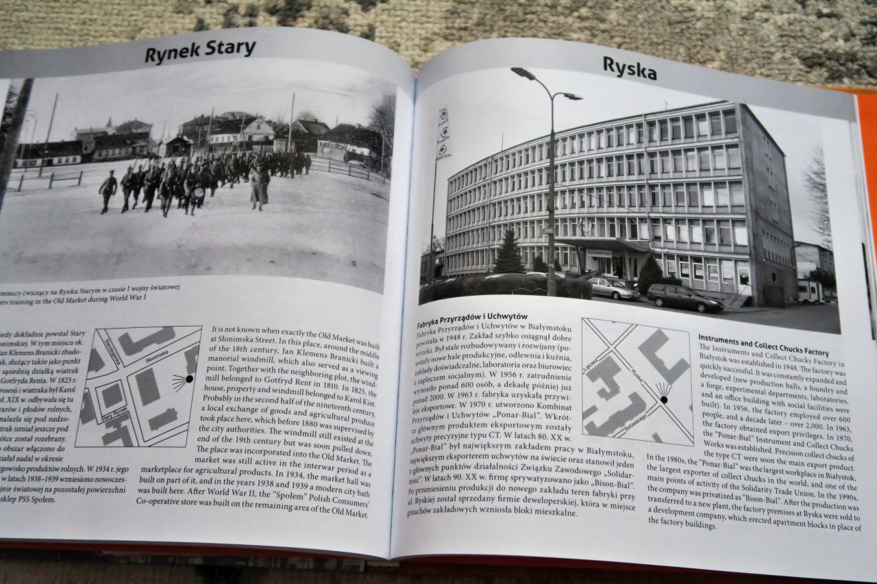 Dlaczego o tym piszę? Otóż „Białystok, którego nie ma” to nie tylko Białystok przedwojenny. To również Białystok odchodzący w czasach mojego dzieciństwa i młodości, czyli wciąż jeszcze nie tak dawno, dawno temu… Wiesław Wróbel, którego możecie kojarzyć z innych publikacji poświęconych miastu, jest autorem tomu nowej serii wydawnictwa Księży Młyn. To miasta, których nie ma. W książce znajdziecie bardzo szeroki przekrój miejsc i budynków w Białymstoku, które zniknęły z mapy miasta lub całkowicie zmieniły swoje przeznaczenie. To nie tylko zabytkowe kamienice, ale również stary amfiteatr, Hala Włókniarz, Hala Jagiellonii czy „Uchwyty”. Każdemu budynkowi towarzyszy czarno-białe zdjęcie i krótki opis w języku polskim i angielskim. Można się dużo dowiedzieć i sporo powspominać.