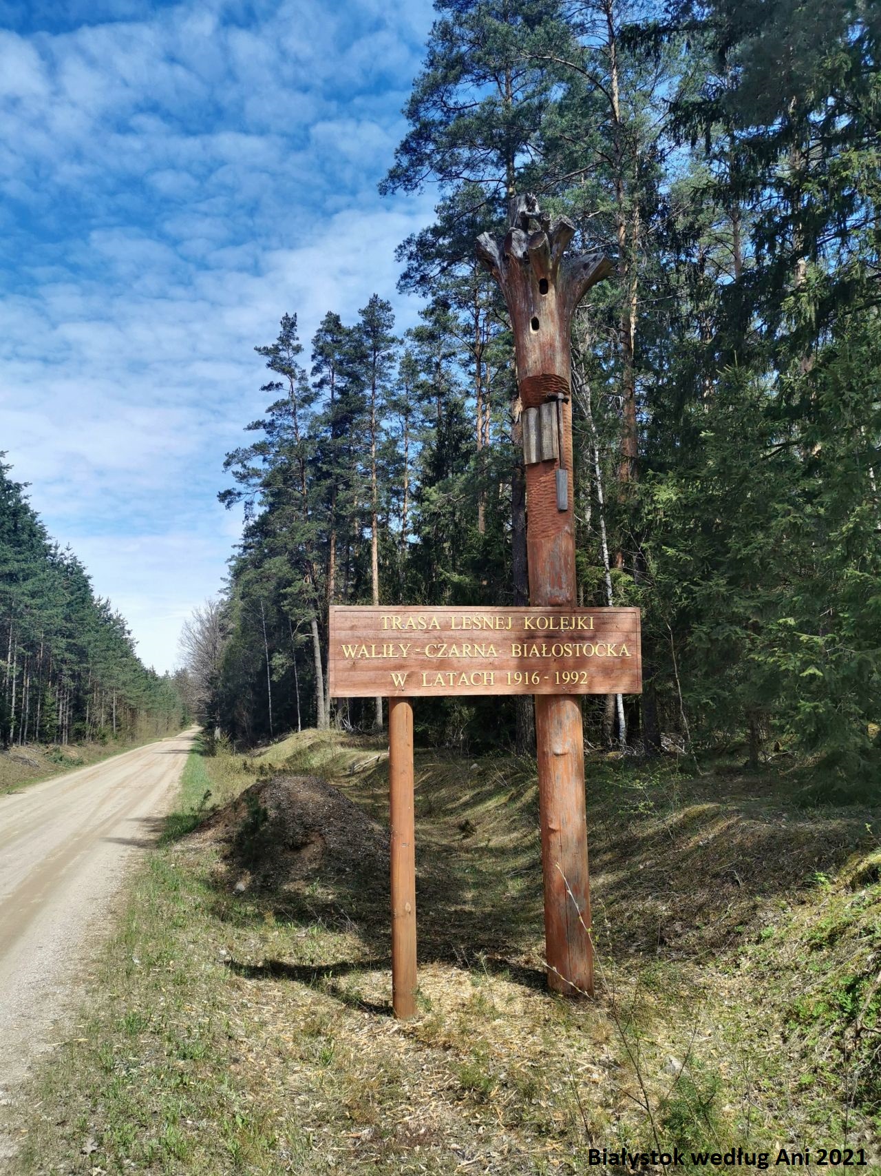 Na początek trochę historii. W latach 1916-1992 (wg niektórych źródeł do 1991 roku) na trasie między Waliłami a Czarną Białostocką kursowała wąskotorowa kolej leśna o długości 48 km (długość wszystkich odcinków kolejki wąskotorowej w Puszczy Knyszyńskiej była znacznie bardziej imponująca – w szczytowym okresie wynosiła aż 158 km). Trasa kolejki biegła przez Kopną Górę, a kończyła właśnie w Czarnej Białostockiej, zwanej aż do 1962 roku Czarną Wsią. W 1915 roku Czarną Wieś zajęły wojska niemieckie. Niemcy wybudowali tam w latach 1916-1918 zespół tartaków i techniczne zaplecze kolei wąskotorowej o rozstawie szyn 600 mm. Powstały warsztaty mechaniczne i elektrownia. Wszystko po to, by pozyskać z Puszczy Knyszyńskiej jak najwięcej drewna. Nie bez znaczenia było oczywiście położenie Czarnej Wsi – przebiegała tamtędy również normalnotorowa Kolej Warszawsko-Petersburska. Po zakończeniu I wojny światowej przemysł drzewny w regionie dzisiejszej Czarnej Białostockiej silnie się rozwijał, sieć kolejki znacznie rozbudowywano. Krótko przed wybuchem II wojny światowej w Czarnej Wsi Stacji powstało Osiedle Tartaczne, ale w 1944 roku wycofujący się Niemcy zniszczyli tartak i kompleks stacyjny. W 1945 roku knyszyńska kolej wąskotorowa została przejęta przez Lasy Państwowe i nadal była eksploatowana przez Zakład Transportu i Spedycji Lasów Państwowych. Wraz z rozwojem transportu kołowego znaczenie kolei wąskotorowej w transporcie drewna zaczęło systematycznie maleć, w związku z czym już w latach 70. i 80. XX wieku zamykano mniej uczęszczane odcinki. Oficjalnie kolejka leśna przestała funkcjonować na początku lat 90., wiele fragmentów torów rozebrano i zezłomowano, jednak dzięki interwencji konserwatora zabytków część kolejki na odcinku Czarna Białostocka-Kopna Góra (łącznie 20 km) została wpisana do rejestru zabytków. Już kilkakrotnie mówiono o próbach reaktywacji kolejki na tej trasie w celach turystycznych i edukacyjnych, ale do dziś nie podjęto żadnych wiążących decyzji. Wrażenie robi z pewnością zachowany w Rezerwacie Woronicza fragment torów i składnice na śródleśnej polanie. Należy przypomnieć, że ta kolej jest pozostałością po jednej z czterech zachowanych w Polsce wąskotorowych kolejek leśnych. W 1945 r. w Polsce istniało 37 oddzielnych kolejek leśnych o rozstawie szyn 600, 750 i 1000 mm o łącznej długości powyżej 1000 km, z czego zachowały się cztery (w Puszczy Augustowskiej, w Puszczy Białowieskiej, w Puszczy Knyszyńskiej i w Bieszczadach), podaje przewodnik Ścieżka szlakiem Powstania Styczniowego, który Wam szczerze polecam.
