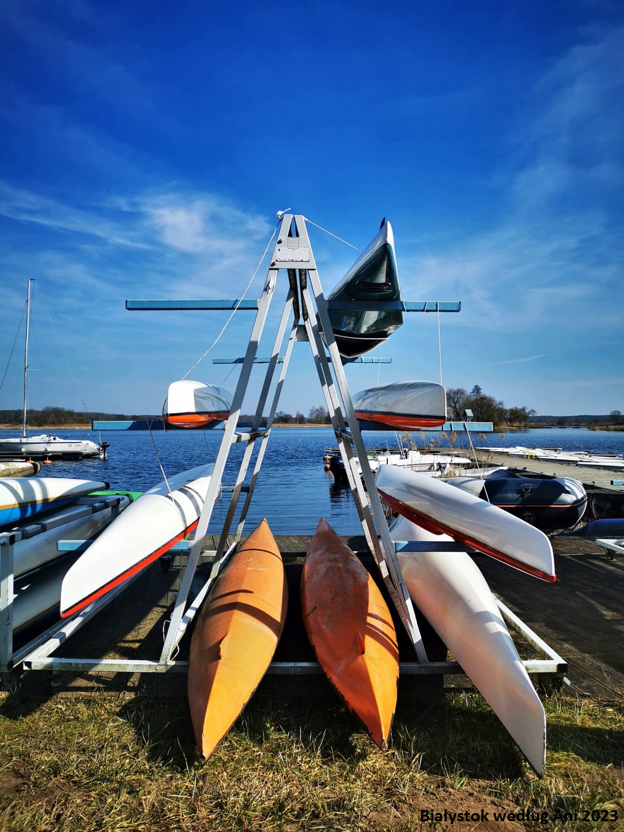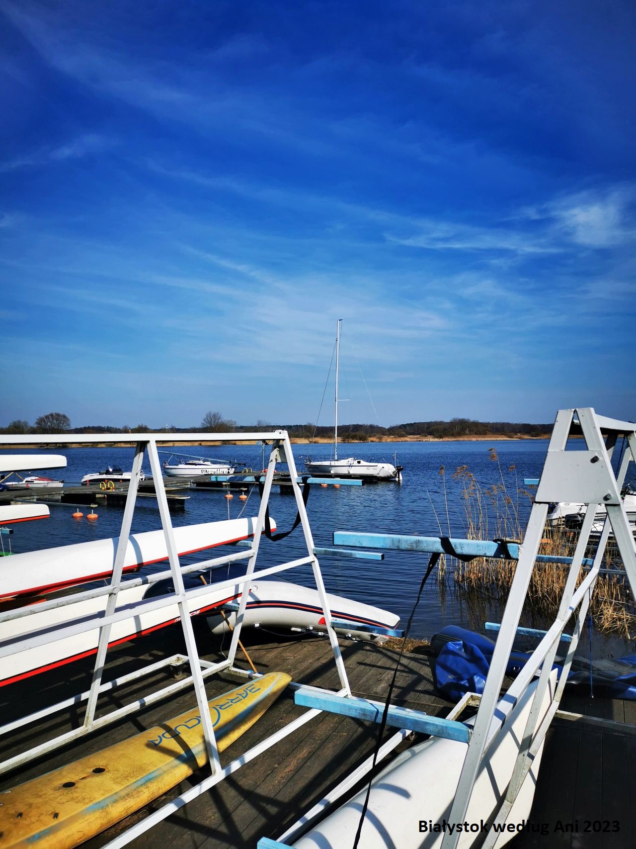 Białystok oczywiście też nie leży nad prawdziwą wielką wodą. Białko, nie obrażaj się, dobrze, że chociaż Ty jesteś! Ale jeśli nie mamy czasu na wyjazd nad Siemianówkę czy do Augustowa, możemy wybrać się na Dojlidy. Rowerem (cała droga z Białostoczku prowadzi po ścieżkach rowerowych), autobusem, samochodem. A i pieszo, jeśli chcemy wyrabiać kroki. Przed i po sezonie wstęp jest bezpłatny, można popatrzeć na wodę, uruchomić wyobraźnię i pomyśleć, że to może jakieś Pojezierze… I oczywiście napić się kawy :) Jeśli mamy szczęście, załapiemy się na treningi jednostek pływających albo na spotkania morsów. Zawsze możemy też obejść Zalew dookoła. W lesie ukrytych jest kilka placów zabaw (w cieniu również latem) oraz siłownie pod chmurką. To zdecydowanie jedno w moich ulubionych miejsc w Białymstoku :)