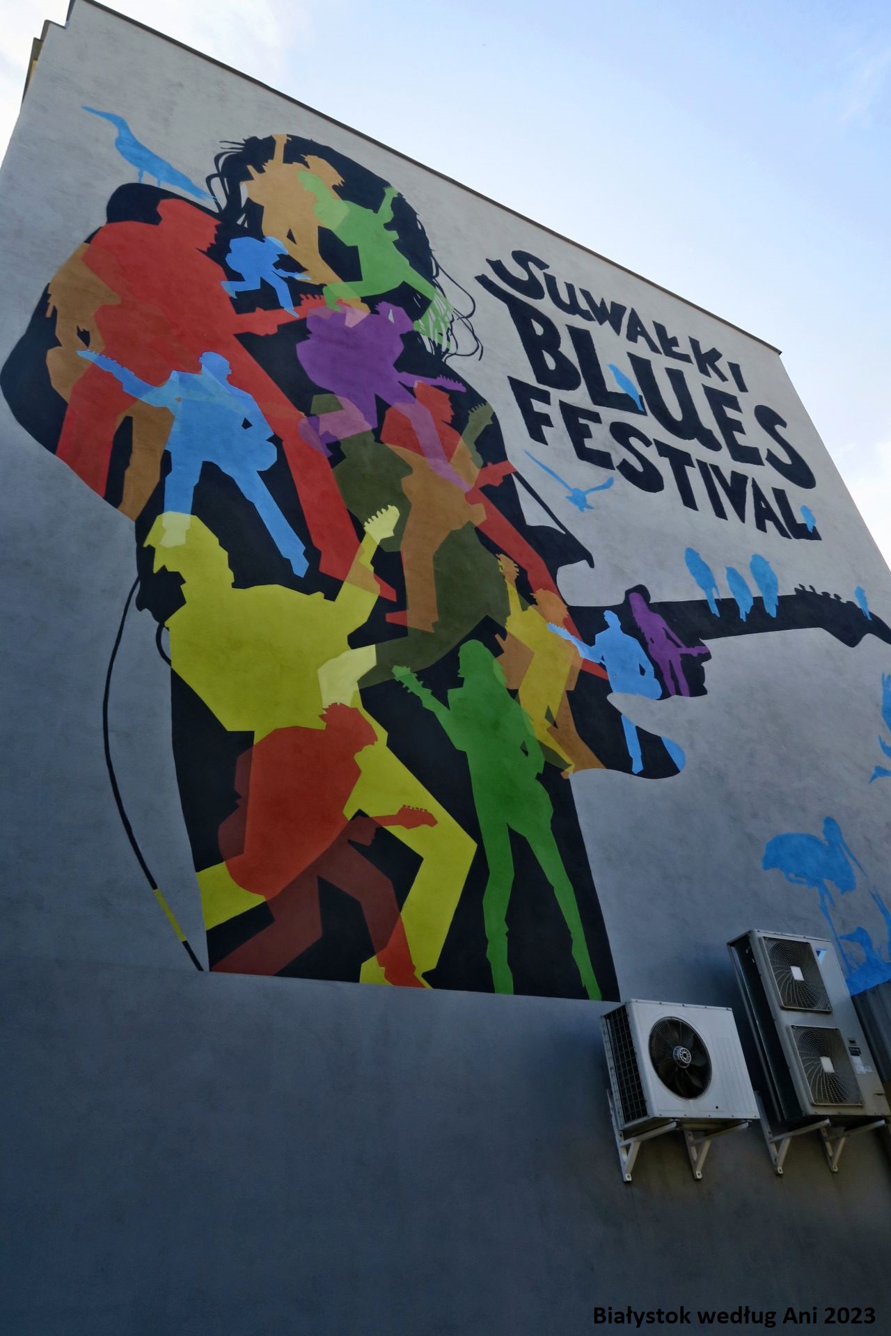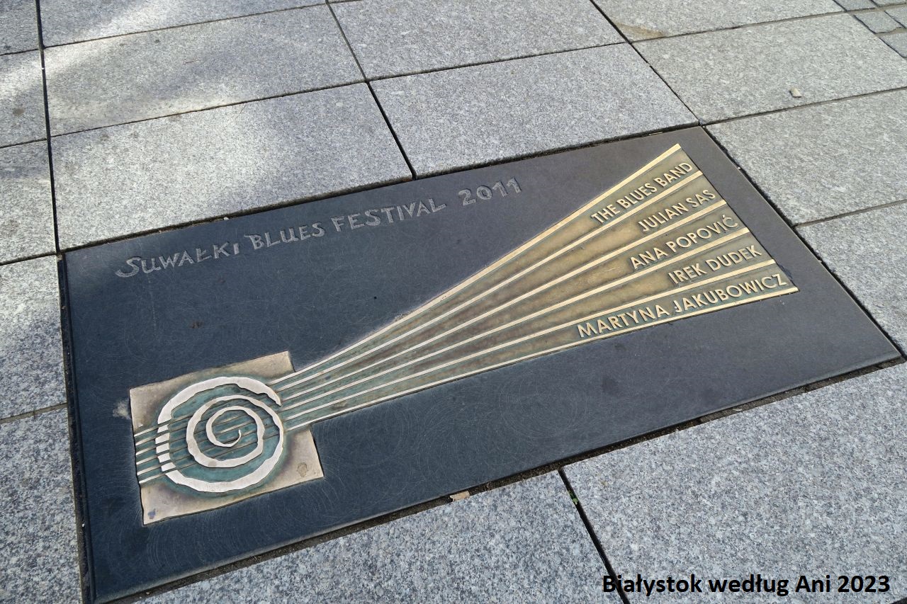 Blues – Suwałki od wielu lat określane są jako polska stolica bluesa. W lipcu odbywa się tam Suwałki Blues Festival, o czym przypominają mural, Ławeczka Bluesmana oraz Aleja Gwiazd Bluesa. Na zdjęciu kafelek z Martyną Jakubowicz, ponieważ Mama wybierała się na jej jesienny koncert w Białymstoku.