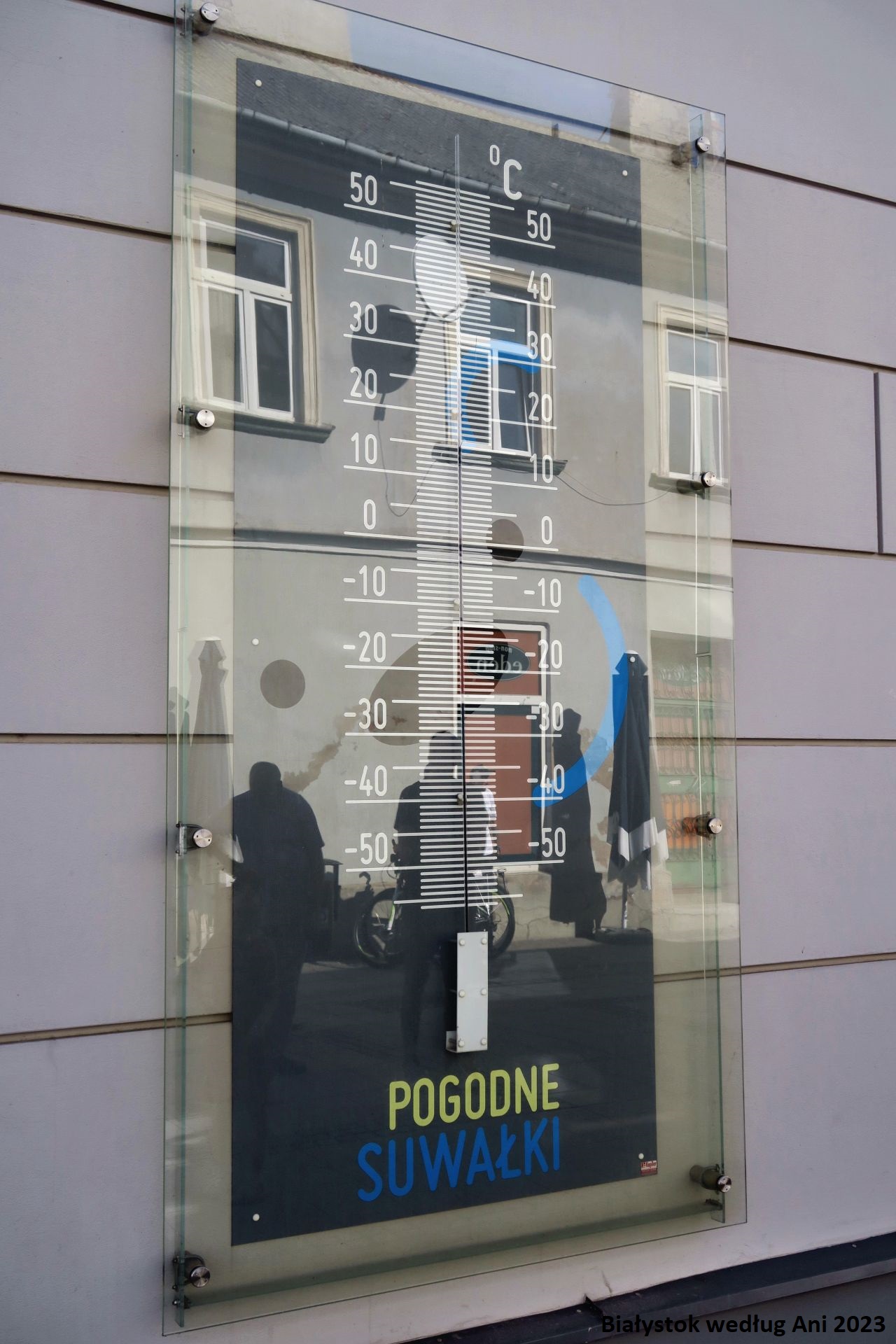 Dystans i poczucie humoru – wielki termometr na ulicy nomen omen Chłodnej. Nie sposób się nie uśmiechnąć. No jak już ma być ten biegun zimna i białe niedźwiedzie, to uczyńmy z nich znak rozpoznawczy. Pomysł trafiony w dziesiątkę, tak jak i hasło Pogodne Suwałki!