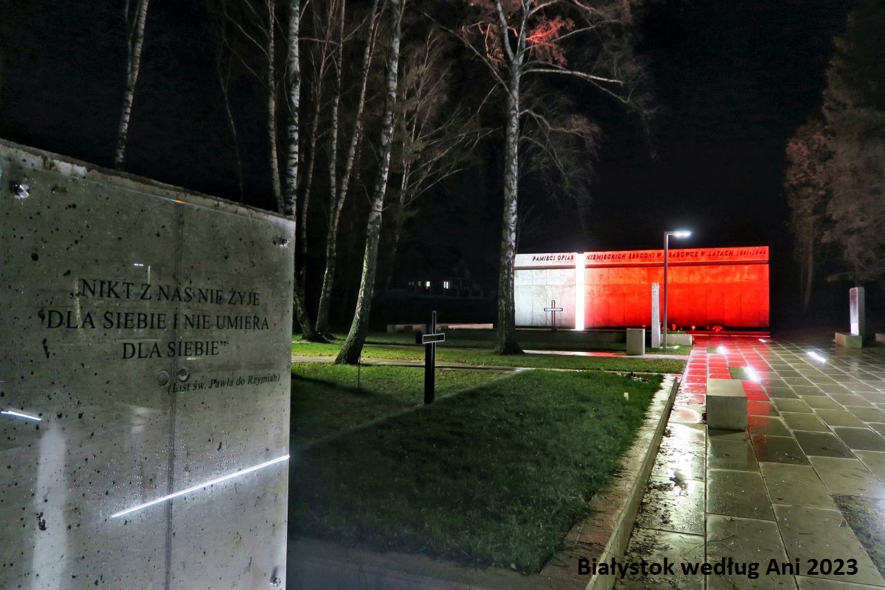 Już od pewnego czasu mówiło się o planowanej renowacji tego ważnego dla Białostocczyzny miejsca i wreszcie możemy podziwiać efekty tych prac. Oficjalnie odsłonięto odrestaurowane Miejsce Pamięci pod koniec listopada 2023 roku. W uroczystości brali udział przedstawiciele władz lokalnych oraz państwowych. Widziałam wcześniej zdjęcia z tego wydarzenia i uznałam, że muszę ocenić efekty rewitalizacji na żywo. Pora nie była najlepsza – padał deszcz, było zimno i ponuro, ale z drugiej strony szum tamtejszych drzew wywoływał wręcz dreszcze i niejako podkreślał dramatyzm wydarzeń z okresu II wojny światowej.