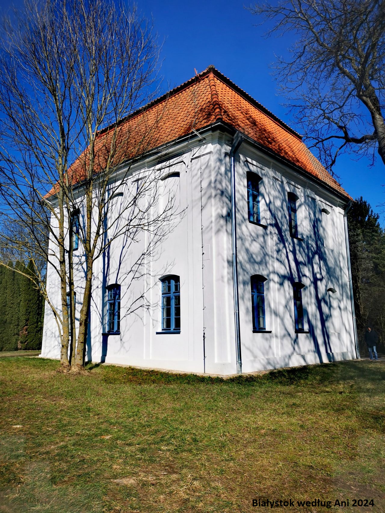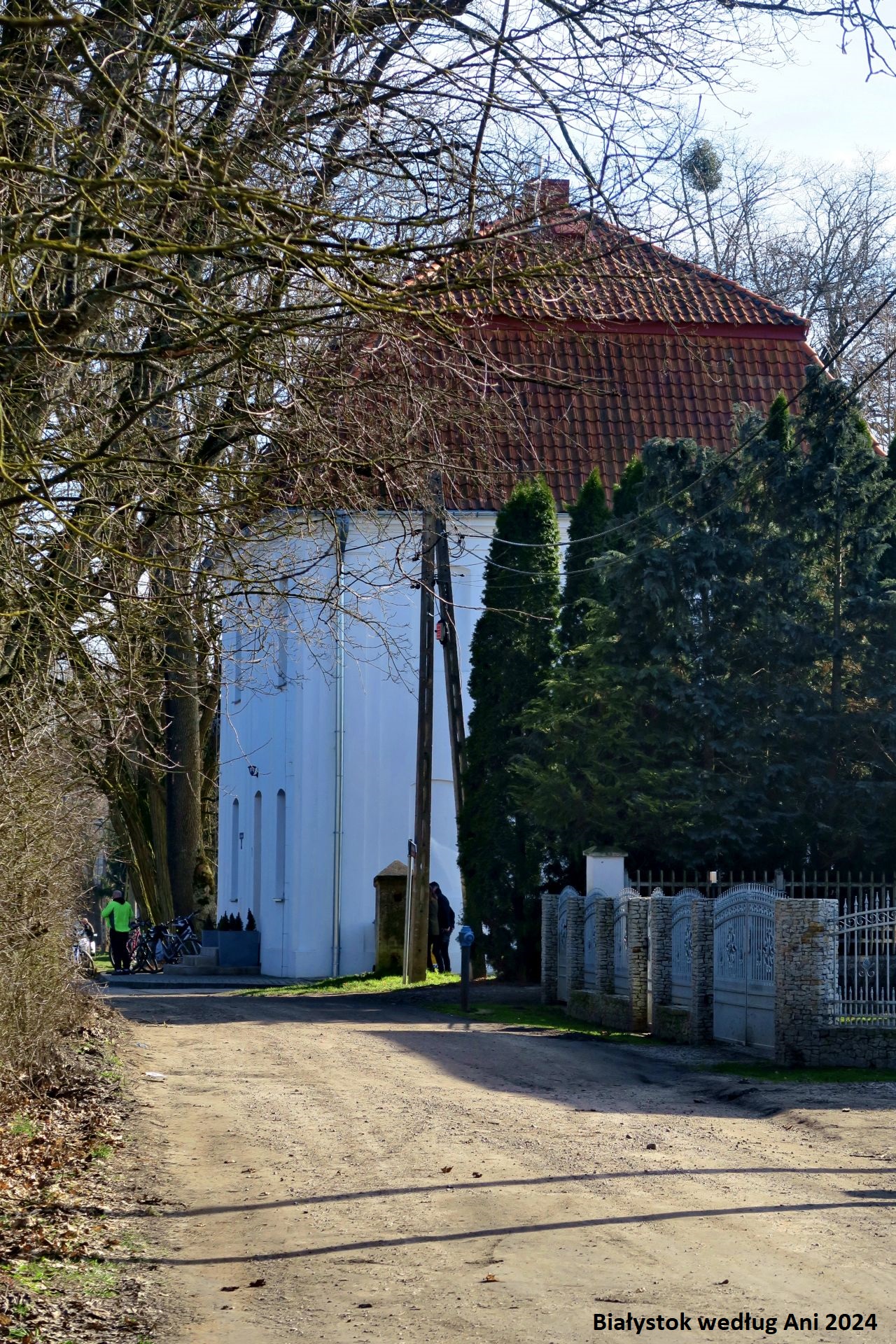 Uwagę zwiedzających przykuwa na początku ładnie odrestaurowany dwór myśliwski. Słusznie dopatrzycie się w nim podobieństw do letniej rezydencji Branickich w Choroszczy, gdyż ten budynek zaprojektował Jan Henryk Klemm, architekt choroszczańskiego pałacu. Warto nadmienić, że ów nietypowy w swej bryle dworek znajdował się niegdyś na terenie centralnej kwatery dawnego ogrodu włoskiego. Założeń ogrodowych próżno dziś szukać, jednak liczę na renowację terenu wokół dworku. Przydałby się niewielki parking, ale przede wszystkim ławki i chociaż jedna alejka spacerowa. Z pewnością dodałoby to nieco szyku i elegancji stojącemu dziś samotnie dworkowi.