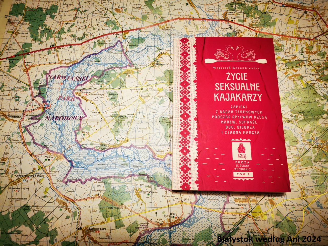 Koronkiewicz zaczyna swoją przygodę na naszych lokalnych rzekach w zabytkowym i bardzo ciężkim kajaku swojego dziadka, który w trakcie jednej z wypraw godnie kończy swój żywot. Później przerzuca się na kajak dmuchany i płynie Narwią, Biebrzą, Czarną Hańczą, Bugiem, Supraślą. I obserwuje, zapisuje, komentuje, dodaje tło historyczne. Krótko mówiąc, robi dokładnie to, co ja chciałabym robić z perspektywy siodełka mojego roweru. Ma przy tym taką lekkość spisywania przygód, robi to w bardzo obrazowy sposób, zatem nietrudno wyobrazić sobie wszystkie przedstawiane miejsca. Szczególnie wtedy, kiedy tereny są nam bliskie, znamy je i widzimy w myślach.