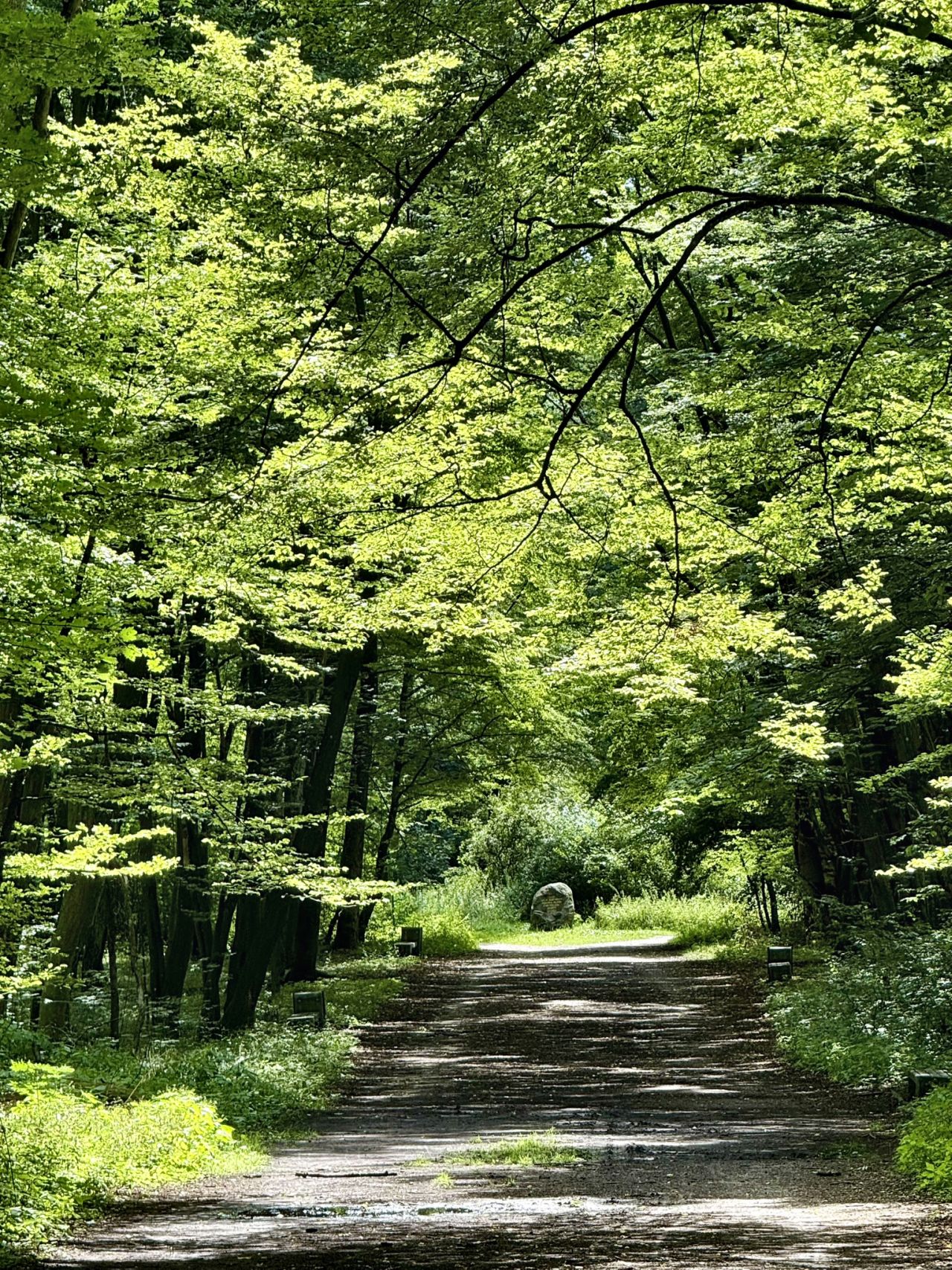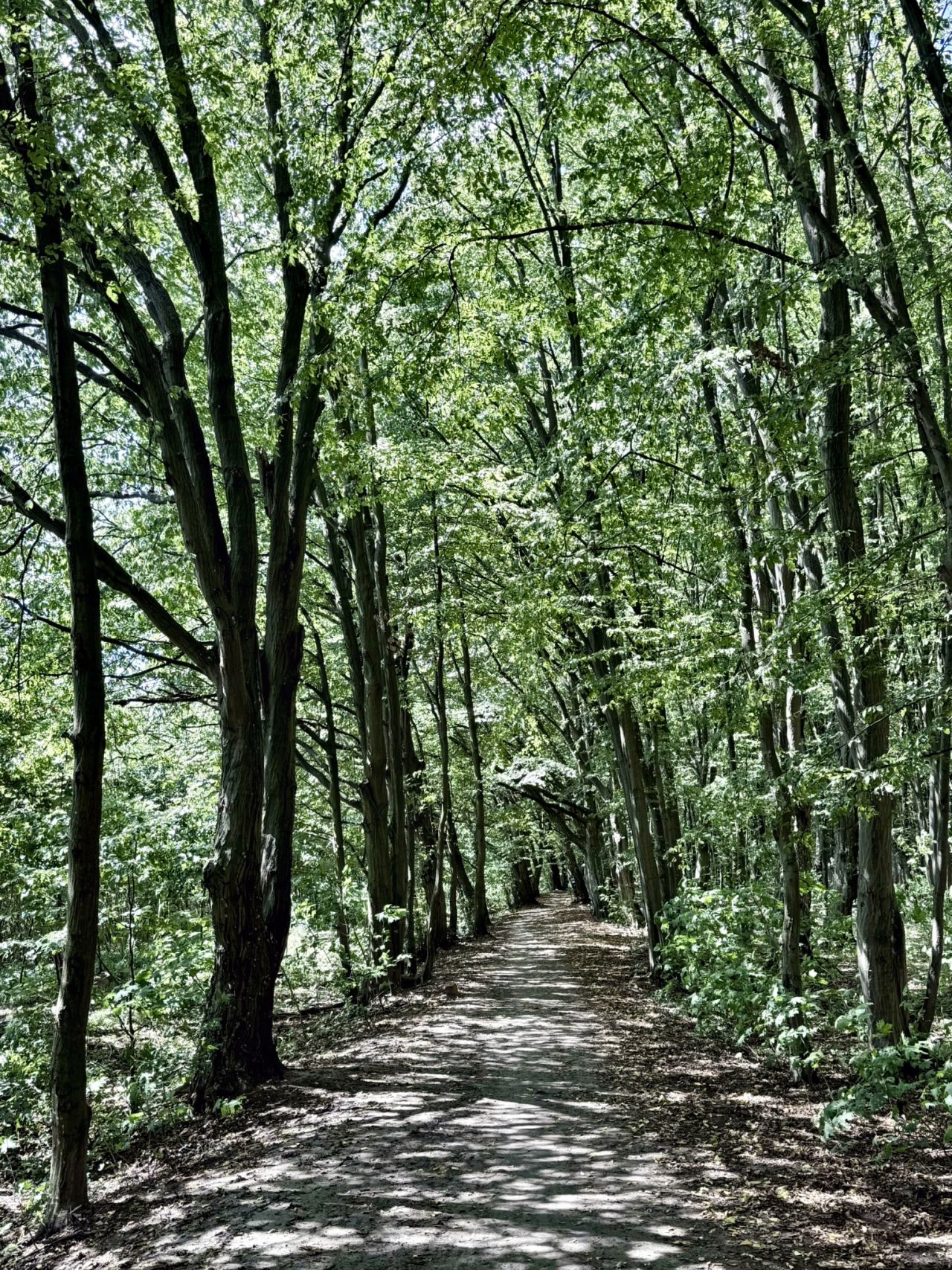 Dawno, dawno temu zjeżdżałam tam na sankach z Łysej Góry. Przez lata las jednak urósł, wokół pojawiły się nowe ulice. Nadal znajduje się trochę na uboczu i ze względu na gęste nasadzenia i przecinające go tory nie jest najwygodniejszym terenem spacerowym. Po lipcowych opadach część ścieżek była nieprzejezdna (rowerem). Najważniejsze jednak, że jest!